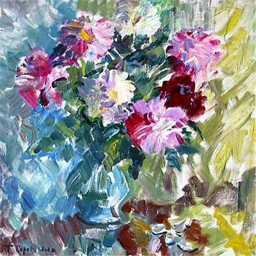Beautiful bouquet of flowers in impressionism style of well-known Russian artist Sorokina Tatyana.</em></td>