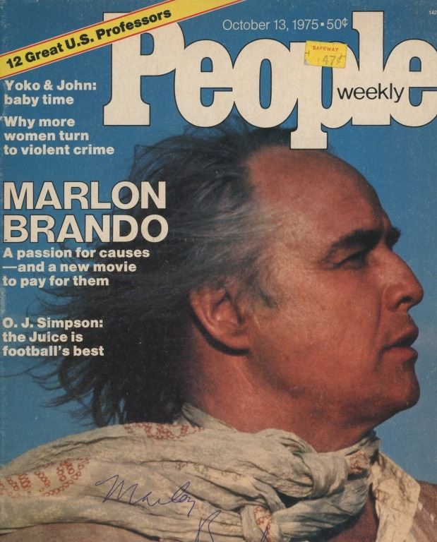People Magazine autographed by Marlon Brando. Issue date October 13, 1975. GFA Authenticated.HL5457
