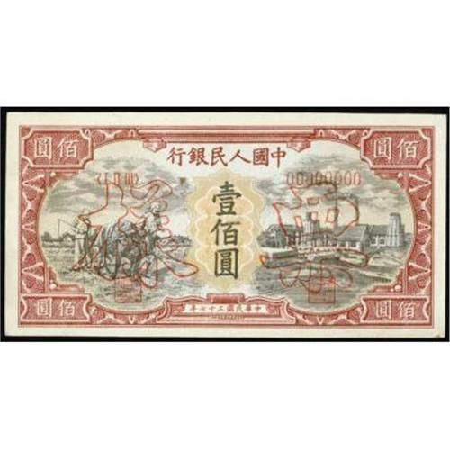 <style type="text/css"> body, td, th { font-family: Arial, Helvetica, sans-serif; font-size: 12px; color: #482424; margin: 0px; padding: 0px; } #header { background-image: url(http://www.bowersandmerena.com/ebay/images/template_v3_01.gif); clear: both; background-color: #590303; border-top-width: 2px; border-top-style: solid; border-top-color: #B38C4F; } #header #header_wrapper { height: 75px; clear: both; width: 800px; margin-right: auto; margin-left: auto; background-image: url(http://www.bowersandmerena.com/ebay/images/template_v3_03.gif); background-repeat: no-repeat; background-position: right; color: #F3EDCC; } #header #header_wrapper #header_logo { float: left; height: 75px; width: 444px; background-image: url(http://www.bowersandmerena.com/ebay/images/template_v3_02.gif); background-repeat: no-repeat; font-size: 10px; text-transform: capitalize; color: #B38C4F; } #header #header_wrapper #header_right { float: left; height: 75px; width: 356px; text-align: right; } #header #header_wrapper #header_right #headerLoginBtn { margin-bottom: 30px; } #header #header_wrapper #header_right input#txtSearch { color: #B49056; border: 1px solid #B49056; width: 175px; padding-top: 3px; padding-right: 3px; padding-bottom: 4px; padding-left: 3px; } #nav { height: 37px; background-image: url(http://www.bowersandmerena.com/ebay/images/template_v3_05.gif); clear: both; } #nav #nav_wrapper { height: 35px; width: 800px; margin-right: auto; margin-left: auto; border-left-width: 1px; border-left-style: solid; border-left-color: #B38C4F; } #nav #nav_wrapper a { padding-right: 15px; padding-left: 15px; border-right-width: 1px; border-right-style: solid; border-right-color: #B38C4F; height: 25px; padding-top: 10px; display: block; float: left; text-decoration: none; font-weight: bold; color: #5D0303; } #nav #nav_wrapper a:hover { color: #B38C4F; } #nav #nav_wrapper #search { float: right; padding-top: 7px; } #nav #nav_wrapper #search #txtSearch { font-family: Arial, Helvetica, sans-serif; font-size: 10px; text-transform: uppercase; color: #D2AE75; border: 1px solid #B38C4F; padding: 3px; } #content_bgd { background-image: url(http://www.bowersandmerena.com/ebay/images/template_v3_09.gif); background-repeat: repeat-y; background-position: center; padding-top: 15px; padding-bottom: 15px; background-color: #FBFBDB; } #content_wrapper { clear: both; height: auto; width: 800px; margin-right: auto; margin-left: auto; } .LotDetailWhite { line-height:normal; font-size:13px; font-family: arial,helvetica,sans-serif; color: White; font-weight: bold; } .LotDetailInformation { line-height:normal; font-size: 13px; font-family: arial,helvetica,sans-serif; } .LotDetailMessage { line-height:normal; font-size: 13px; font-family: arial,helvetica,sans-serif; color: red; } } tr.HeaderAuctionTitle td { color: #000000; font-weight: bold; padding: 2px; background-image: url(http://www.bowersandmerena.com/ebay/images/template_v3_05.gif); background-repeat: repeat-x; border-bottom-width: 1px; border-bottom-style: solid; border-bottom-color: #B38C4F; } table.AuctionSummary a, table.AuctionSummary a:link, table.AuctionSummary a:visited { color: #0000FF; text-decoration: none; } } td.tableHeaderLeft { border-left-width: 1px; border-left-style: solid; border-left-color: #B38C4F; } td.tableHeaderRight { border-right-width: 1px; border-right-style: solid; border-right-color: #B38C4F; } td.tableCellMiddle { border-left-width: 1px; border-left-style: solid; border-left-color: #B38C4F; border-right-width: 1px; border-right-style: solid; border-right-color: #B38C4F; padding: 5px; } tr.footer td { border-top-width: 1px; border-top-style: solid; border-top-color: #B38C4F; } </style> </head> <body> <div id="header"> <div id="header_wrapper"> <div id="header_logo"> </div> <div id="header_right"> </div> </div> </div> <div id="nav"> <div id="nav_wrapper"> <a href="http://www.bowersandmerena.com">Our eBayLive Auctions</a> <a href="#PaymentInfo">Payment Information</a> <a href="#ShippingInfo">Shipping Information</a> <a href="#About">About Bowers and Merena</a> </div> </div> <div id="content_bgd"> <div id="content_wrapper"> <table width="100%" border="0" cellpadding="5" cellspacing="0" class="AuctionSummary"> <tbody> <tr class="HeaderAuctionTitle" style="height: 25px;"> <td align="left" class="tableHeaderLeft" > </td> <td align="center" class="tableHeaderRight"> <span style="font-size: large;">Lot #267. People's Republic of China. People's Bank of China, 1948 Issues.</span> </td> </tr> <tr> <td colspan="3" class="tableCellMiddle"> 1948, 100 Yuan, P-808 Unlisted Uniface Specimen face and back, Unc. condition.