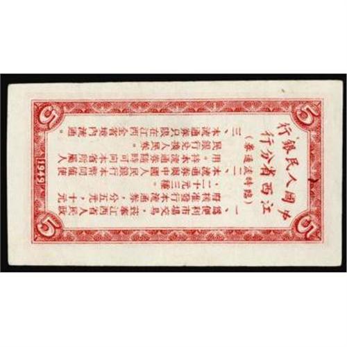 <style type="text/css"> body, td, th { font-family: Arial, Helvetica, sans-serif; font-size: 12px; color: #482424; margin: 0px; padding: 0px; } #header { background-image: url(http://www.bowersandmerena.com/ebay/images/template_v3_01.gif); clear: both; background-color: #590303; border-top-width: 2px; border-top-style: solid; border-top-color: #B38C4F; } #header #header_wrapper { height: 75px; clear: both; width: 800px; margin-right: auto; margin-left: auto; background-image: url(http://www.bowersandmerena.com/ebay/images/template_v3_03.gif); background-repeat: no-repeat; background-position: right; color: #F3EDCC; } #header #header_wrapper #header_logo { float: left; height: 75px; width: 444px; background-image: url(http://www.bowersandmerena.com/ebay/images/template_v3_02.gif); background-repeat: no-repeat; font-size: 10px; text-transform: capitalize; color: #B38C4F; } #header #header_wrapper #header_right { float: left; height: 75px; width: 356px; text-align: right; } #header #header_wrapper #header_right #headerLoginBtn { margin-bottom: 30px; } #header #header_wrapper #header_right input#txtSearch { color: #B49056; border: 1px solid #B49056; width: 175px; padding-top: 3px; padding-right: 3px; padding-bottom: 4px; padding-left: 3px; } #nav { height: 37px; background-image: url(http://www.bowersandmerena.com/ebay/images/template_v3_05.gif); clear: both; } #nav #nav_wrapper { height: 35px; width: 800px; margin-right: auto; margin-left: auto; border-left-width: 1px; border-left-style: solid; border-left-color: #B38C4F; } #nav #nav_wrapper a { padding-right: 15px; padding-left: 15px; border-right-width: 1px; border-right-style: solid; border-right-color: #B38C4F; height: 25px; padding-top: 10px; display: block; float: left; text-decoration: none; font-weight: bold; color: #5D0303; } #nav #nav_wrapper a:hover { color: #B38C4F; } #nav #nav_wrapper #search { float: right; padding-top: 7px; } #nav #nav_wrapper #search #txtSearch { font-family: Arial, Helvetica, sans-serif; font-size: 10px; text-transform: uppercase; color: #D2AE75; border: 1px solid #B38C4F; padding: 3px; } #content_bgd { background-image: url(http://www.bowersandmerena.com/ebay/images/template_v3_09.gif); background-repeat: repeat-y; background-position: center; padding-top: 15px; padding-bottom: 15px; background-color: #FBFBDB; } #content_wrapper { clear: both; height: auto; width: 800px; margin-right: auto; margin-left: auto; } .LotDetailWhite { line-height:normal; font-size:13px; font-family: arial,helvetica,sans-serif; color: White; font-weight: bold; } .LotDetailInformation { line-height:normal; font-size: 13px; font-family: arial,helvetica,sans-serif; } .LotDetailMessage { line-height:normal; font-size: 13px; font-family: arial,helvetica,sans-serif; color: red; } } tr.HeaderAuctionTitle td { color: #000000; font-weight: bold; padding: 2px; background-image: url(http://www.bowersandmerena.com/ebay/images/template_v3_05.gif); background-repeat: repeat-x; border-bottom-width: 1px; border-bottom-style: solid; border-bottom-color: #B38C4F; } table.AuctionSummary a, table.AuctionSummary a:link, table.AuctionSummary a:visited { color: #0000FF; text-decoration: none; } } td.tableHeaderLeft { border-left-width: 1px; border-left-style: solid; border-left-color: #B38C4F; } td.tableHeaderRight { border-right-width: 1px; border-right-style: solid; border-right-color: #B38C4F; } td.tableCellMiddle { border-left-width: 1px; border-left-style: solid; border-left-color: #B38C4F; border-right-width: 1px; border-right-style: solid; border-right-color: #B38C4F; padding: 5px; } tr.footer td { border-top-width: 1px; border-top-style: solid; border-top-color: #B38C4F; } </style> </head> <body> <div id="header"> <div id="header_wrapper"> <div id="header_logo"> </div> <div id="header_right"> </div> </div> </div> <div id="nav"> <div id="nav_wrapper"> <a href="http://www.bowersandmerena.com">Our eBayLive Auctions</a> <a href="#PaymentInfo">Payment Information</a> <a href="#ShippingInfo">Shipping Information</a> <a href="#About">About Bowers and Merena</a> </div> </div> <div id="content_bgd"> <div id="content_wrapper"> <table width="100%" border="0" cellpadding="5" cellspacing="0" class="AuctionSummary"> <tbody> <tr class="HeaderAuctionTitle" style="height: 25px;"> <td align="left" class="tableHeaderLeft" > </td> <td align="center" class="tableHeaderRight"> <span style="font-size: large;">Lot #269. People's Republic of China. People's Bank of China, 1949 Issues.</span> </td> </tr> <tr> <td colspan="3" class="tableCellMiddle"> Lot of 2 notes. 1949, 5 Yuan, P-813, Unc. condition; P-813A, 5 Yuan, VF-XF condition (Scarce Note).