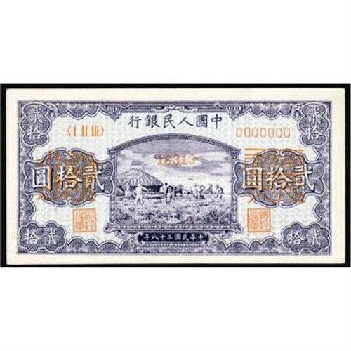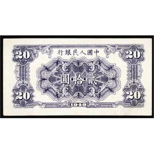 <style type="text/css"> body, td, th { font-family: Arial, Helvetica, sans-serif; font-size: 12px; color: #482424; margin: 0px; padding: 0px; } #header { background-image: url(http://www.bowersandmerena.com/ebay/images/template_v3_01.gif); clear: both; background-color: #590303; border-top-width: 2px; border-top-style: solid; border-top-color: #B38C4F; } #header #header_wrapper { height: 75px; clear: both; width: 800px; margin-right: auto; margin-left: auto; background-image: url(http://www.bowersandmerena.com/ebay/images/template_v3_03.gif); background-repeat: no-repeat; background-position: right; color: #F3EDCC; } #header #header_wrapper #header_logo { float: left; height: 75px; width: 444px; background-image: url(http://www.bowersandmerena.com/ebay/images/template_v3_02.gif); background-repeat: no-repeat; font-size: 10px; text-transform: capitalize; color: #B38C4F; } #header #header_wrapper #header_right { float: left; height: 75px; width: 356px; text-align: right; } #header #header_wrapper #header_right #headerLoginBtn { margin-bottom: 30px; } #header #header_wrapper #header_right input#txtSearch { color: #B49056; border: 1px solid #B49056; width: 175px; padding-top: 3px; padding-right: 3px; padding-bottom: 4px; padding-left: 3px; } #nav { height: 37px; background-image: url(http://www.bowersandmerena.com/ebay/images/template_v3_05.gif); clear: both; } #nav #nav_wrapper { height: 35px; width: 800px; margin-right: auto; margin-left: auto; border-left-width: 1px; border-left-style: solid; border-left-color: #B38C4F; } #nav #nav_wrapper a { padding-right: 15px; padding-left: 15px; border-right-width: 1px; border-right-style: solid; border-right-color: #B38C4F; height: 25px; padding-top: 10px; display: block; float: left; text-decoration: none; font-weight: bold; color: #5D0303; } #nav #nav_wrapper a:hover { color: #B38C4F; } #nav #nav_wrapper #search { float: right; padding-top: 7px; } #nav #nav_wrapper #search #txtSearch { font-family: Arial, Helvetica, sans-serif; font-size: 10px; text-transform: uppercase; color: #D2AE75; border: 1px solid #B38C4F; padding: 3px; } #content_bgd { background-image: url(http://www.bowersandmerena.com/ebay/images/template_v3_09.gif); background-repeat: repeat-y; background-position: center; padding-top: 15px; padding-bottom: 15px; background-color: #FBFBDB; } #content_wrapper { clear: both; height: auto; width: 800px; margin-right: auto; margin-left: auto; } .LotDetailWhite { line-height:normal; font-size:13px; font-family: arial,helvetica,sans-serif; color: White; font-weight: bold; } .LotDetailInformation { line-height:normal; font-size: 13px; font-family: arial,helvetica,sans-serif; } .LotDetailMessage { line-height:normal; font-size: 13px; font-family: arial,helvetica,sans-serif; color: red; } } tr.HeaderAuctionTitle td { color: #000000; font-weight: bold; padding: 2px; background-image: url(http://www.bowersandmerena.com/ebay/images/template_v3_05.gif); background-repeat: repeat-x; border-bottom-width: 1px; border-bottom-style: solid; border-bottom-color: #B38C4F; } table.AuctionSummary a, table.AuctionSummary a:link, table.AuctionSummary a:visited { color: #0000FF; text-decoration: none; } } td.tableHeaderLeft { border-left-width: 1px; border-left-style: solid; border-left-color: #B38C4F; } td.tableHeaderRight { border-right-width: 1px; border-right-style: solid; border-right-color: #B38C4F; } td.tableCellMiddle { border-left-width: 1px; border-left-style: solid; border-left-color: #B38C4F; border-right-width: 1px; border-right-style: solid; border-right-color: #B38C4F; padding: 5px; } tr.footer td { border-top-width: 1px; border-top-style: solid; border-top-color: #B38C4F; } </style> </head> <body> <div id="header"> <div id="header_wrapper"> <div id="header_logo"> </div> <div id="header_right"> </div> </div> </div> <div id="nav"> <div id="nav_wrapper"> <a href="http://www.bowersandmerena.com">Our eBayLive Auctions</a> <a href="#PaymentInfo">Payment Information</a> <a href="#ShippingInfo">Shipping Information</a> <a href="#About">About Bowers and Merena</a> </div> </div> <div id="content_bgd"> <div id="content_wrapper"> <table width="100%" border="0" cellpadding="5" cellspacing="0" class="AuctionSummary"> <tbody> <tr class="HeaderAuctionTitle" style="height: 25px;"> <td align="left" class="tableHeaderLeft" > </td> <td align="center" class="tableHeaderRight"> <span style="font-size: large;">Lot #274. People's Republic of China. People's Bank of China, 1949 Issues.</span> </td> </tr> <tr> <td colspan="3" class="tableCellMiddle"> 1949, 20 Yuan, P-823, Unc. condition.
