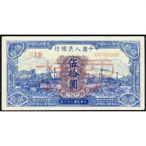 <style type="text/css"> body, td, th { font-family: Arial, Helvetica, sans-serif; font-size: 12px; color: #482424; margin: 0px; padding: 0px; } #header { background-image: url(http://www.bowersandmerena.com/ebay/images/template_v3_01.gif); clear: both; background-color: #590303; border-top-width: 2px; border-top-style: solid; border-top-color: #B38C4F; } #header #header_wrapper { height: 75px; clear: both; width: 800px; margin-right: auto; margin-left: auto; background-image: url(http://www.bowersandmerena.com/ebay/images/template_v3_03.gif); background-repeat: no-repeat; background-position: right; color: #F3EDCC; } #header #header_wrapper #header_logo { float: left; height: 75px; width: 444px; background-image: url(http://www.bowersandmerena.com/ebay/images/template_v3_02.gif); background-repeat: no-repeat; font-size: 10px; text-transform: capitalize; color: #B38C4F; } #header #header_wrapper #header_right { float: left; height: 75px; width: 356px; text-align: right; } #header #header_wrapper #header_right #headerLoginBtn { margin-bottom: 30px; } #header #header_wrapper #header_right input#txtSearch { color: #B49056; border: 1px solid #B49056; width: 175px; padding-top: 3px; padding-right: 3px; padding-bottom: 4px; padding-left: 3px; } #nav { height: 37px; background-image: url(http://www.bowersandmerena.com/ebay/images/template_v3_05.gif); clear: both; } #nav #nav_wrapper { height: 35px; width: 800px; margin-right: auto; margin-left: auto; border-left-width: 1px; border-left-style: solid; border-left-color: #B38C4F; } #nav #nav_wrapper a { padding-right: 15px; padding-left: 15px; border-right-width: 1px; border-right-style: solid; border-right-color: #B38C4F; height: 25px; padding-top: 10px; display: block; float: left; text-decoration: none; font-weight: bold; color: #5D0303; } #nav #nav_wrapper a:hover { color: #B38C4F; } #nav #nav_wrapper #search { float: right; padding-top: 7px; } #nav #nav_wrapper #search #txtSearch { font-family: Arial, Helvetica, sans-serif; font-size: 10px; text-transform: uppercase; color: #D2AE75; border: 1px solid #B38C4F; padding: 3px; } #content_bgd { background-image: url(http://www.bowersandmerena.com/ebay/images/template_v3_09.gif); background-repeat: repeat-y; background-position: center; padding-top: 15px; padding-bottom: 15px; background-color: #FBFBDB; } #content_wrapper { clear: both; height: auto; width: 800px; margin-right: auto; margin-left: auto; } .LotDetailWhite { line-height:normal; font-size:13px; font-family: arial,helvetica,sans-serif; color: White; font-weight: bold; } .LotDetailInformation { line-height:normal; font-size: 13px; font-family: arial,helvetica,sans-serif; } .LotDetailMessage { line-height:normal; font-size: 13px; font-family: arial,helvetica,sans-serif; color: red; } } tr.HeaderAuctionTitle td { color: #000000; font-weight: bold; padding: 2px; background-image: url(http://www.bowersandmerena.com/ebay/images/template_v3_05.gif); background-repeat: repeat-x; border-bottom-width: 1px; border-bottom-style: solid; border-bottom-color: #B38C4F; } table.AuctionSummary a, table.AuctionSummary a:link, table.AuctionSummary a:visited { color: #0000FF; text-decoration: none; } } td.tableHeaderLeft { border-left-width: 1px; border-left-style: solid; border-left-color: #B38C4F; } td.tableHeaderRight { border-right-width: 1px; border-right-style: solid; border-right-color: #B38C4F; } td.tableCellMiddle { border-left-width: 1px; border-left-style: solid; border-left-color: #B38C4F; border-right-width: 1px; border-right-style: solid; border-right-color: #B38C4F; padding: 5px; } tr.footer td { border-top-width: 1px; border-top-style: solid; border-top-color: #B38C4F; } </style> </head> <body> <div id="header"> <div id="header_wrapper"> <div id="header_logo"> </div> <div id="header_right"> </div> </div> </div> <div id="nav"> <div id="nav_wrapper"> <a href="http://www.bowersandmerena.com">Our eBayLive Auctions</a> <a href="#PaymentInfo">Payment Information</a> <a href="#ShippingInfo">Shipping Information</a> <a href="#About">About Bowers and Merena</a> </div> </div> <div id="content_bgd"> <div id="content_wrapper"> <table width="100%" border="0" cellpadding="5" cellspacing="0" class="AuctionSummary"> <tbody> <tr class="HeaderAuctionTitle" style="height: 25px;"> <td align="left" class="tableHeaderLeft" > </td> <td align="center" class="tableHeaderRight"> <span style="font-size: large;">Lot #278. People's Republic of China. People's Bank of China, 1949 Issues.</span> </td> </tr> <tr> <td colspan="3" class="tableCellMiddle"> 1949, 50 Yuan, P-826 Unlisted Uniface Specimen face and back, Unc. condition, rare note.