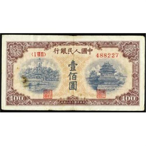 <style type="text/css"> body, td, th { font-family: Arial, Helvetica, sans-serif; font-size: 12px; color: #482424; margin: 0px; padding: 0px; } #header { background-image: url(http://www.bowersandmerena.com/ebay/images/template_v3_01.gif); clear: both; background-color: #590303; border-top-width: 2px; border-top-style: solid; border-top-color: #B38C4F; } #header #header_wrapper { height: 75px; clear: both; width: 800px; margin-right: auto; margin-left: auto; background-image: url(http://www.bowersandmerena.com/ebay/images/template_v3_03.gif); background-repeat: no-repeat; background-position: right; color: #F3EDCC; } #header #header_wrapper #header_logo { float: left; height: 75px; width: 444px; background-image: url(http://www.bowersandmerena.com/ebay/images/template_v3_02.gif); background-repeat: no-repeat; font-size: 10px; text-transform: capitalize; color: #B38C4F; } #header #header_wrapper #header_right { float: left; height: 75px; width: 356px; text-align: right; } #header #header_wrapper #header_right #headerLoginBtn { margin-bottom: 30px; } #header #header_wrapper #header_right input#txtSearch { color: #B49056; border: 1px solid #B49056; width: 175px; padding-top: 3px; padding-right: 3px; padding-bottom: 4px; padding-left: 3px; } #nav { height: 37px; background-image: url(http://www.bowersandmerena.com/ebay/images/template_v3_05.gif); clear: both; } #nav #nav_wrapper { height: 35px; width: 800px; margin-right: auto; margin-left: auto; border-left-width: 1px; border-left-style: solid; border-left-color: #B38C4F; } #nav #nav_wrapper a { padding-right: 15px; padding-left: 15px; border-right-width: 1px; border-right-style: solid; border-right-color: #B38C4F; height: 25px; padding-top: 10px; display: block; float: left; text-decoration: none; font-weight: bold; color: #5D0303; } #nav #nav_wrapper a:hover { color: #B38C4F; } #nav #nav_wrapper #search { float: right; padding-top: 7px; } #nav #nav_wrapper #search #txtSearch { font-family: Arial, Helvetica, sans-serif; font-size: 10px; text-transform: uppercase; color: #D2AE75; border: 1px solid #B38C4F; padding: 3px; } #content_bgd { background-image: url(http://www.bowersandmerena.com/ebay/images/template_v3_09.gif); background-repeat: repeat-y; background-position: center; padding-top: 15px; padding-bottom: 15px; background-color: #FBFBDB; } #content_wrapper { clear: both; height: auto; width: 800px; margin-right: auto; margin-left: auto; } .LotDetailWhite { line-height:normal; font-size:13px; font-family: arial,helvetica,sans-serif; color: White; font-weight: bold; } .LotDetailInformation { line-height:normal; font-size: 13px; font-family: arial,helvetica,sans-serif; } .LotDetailMessage { line-height:normal; font-size: 13px; font-family: arial,helvetica,sans-serif; color: red; } } tr.HeaderAuctionTitle td { color: #000000; font-weight: bold; padding: 2px; background-image: url(http://www.bowersandmerena.com/ebay/images/template_v3_05.gif); background-repeat: repeat-x; border-bottom-width: 1px; border-bottom-style: solid; border-bottom-color: #B38C4F; } table.AuctionSummary a, table.AuctionSummary a:link, table.AuctionSummary a:visited { color: #0000FF; text-decoration: none; } } td.tableHeaderLeft { border-left-width: 1px; border-left-style: solid; border-left-color: #B38C4F; } td.tableHeaderRight { border-right-width: 1px; border-right-style: solid; border-right-color: #B38C4F; } td.tableCellMiddle { border-left-width: 1px; border-left-style: solid; border-left-color: #B38C4F; border-right-width: 1px; border-right-style: solid; border-right-color: #B38C4F; padding: 5px; } tr.footer td { border-top-width: 1px; border-top-style: solid; border-top-color: #B38C4F; } </style> </head> <body> <div id="header"> <div id="header_wrapper"> <div id="header_logo"> </div> <div id="header_right"> </div> </div> </div> <div id="nav"> <div id="nav_wrapper"> <a href="http://www.bowersandmerena.com">Our eBayLive Auctions</a> <a href="#PaymentInfo">Payment Information</a> <a href="#ShippingInfo">Shipping Information</a> <a href="#About">About Bowers and Merena</a> </div> </div> <div id="content_bgd"> <div id="content_wrapper"> <table width="100%" border="0" cellpadding="5" cellspacing="0" class="AuctionSummary"> <tbody> <tr class="HeaderAuctionTitle" style="height: 25px;"> <td align="left" class="tableHeaderLeft" > </td> <td align="center" class="tableHeaderRight"> <span style="font-size: large;">Lot #289. People's Republic of China. People's Bank of China, 1949 Issues.</span> </td> </tr> <tr> <td colspan="3" class="tableCellMiddle"> 1949, 100 Yuan, P-833b, (A29a), wide spaced chops, XF condition.