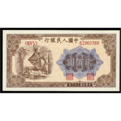 <style type="text/css"> body, td, th { font-family: Arial, Helvetica, sans-serif; font-size: 12px; color: #482424; margin: 0px; padding: 0px; } #header { background-image: url(http://www.bowersandmerena.com/ebay/images/template_v3_01.gif); clear: both; background-color: #590303; border-top-width: 2px; border-top-style: solid; border-top-color: #B38C4F; } #header #header_wrapper { height: 75px; clear: both; width: 800px; margin-right: auto; margin-left: auto; background-image: url(http://www.bowersandmerena.com/ebay/images/template_v3_03.gif); background-repeat: no-repeat; background-position: right; color: #F3EDCC; } #header #header_wrapper #header_logo { float: left; height: 75px; width: 444px; background-image: url(http://www.bowersandmerena.com/ebay/images/template_v3_02.gif); background-repeat: no-repeat; font-size: 10px; text-transform: capitalize; color: #B38C4F; } #header #header_wrapper #header_right { float: left; height: 75px; width: 356px; text-align: right; } #header #header_wrapper #header_right #headerLoginBtn { margin-bottom: 30px; } #header #header_wrapper #header_right input#txtSearch { color: #B49056; border: 1px solid #B49056; width: 175px; padding-top: 3px; padding-right: 3px; padding-bottom: 4px; padding-left: 3px; } #nav { height: 37px; background-image: url(http://www.bowersandmerena.com/ebay/images/template_v3_05.gif); clear: both; } #nav #nav_wrapper { height: 35px; width: 800px; margin-right: auto; margin-left: auto; border-left-width: 1px; border-left-style: solid; border-left-color: #B38C4F; } #nav #nav_wrapper a { padding-right: 15px; padding-left: 15px; border-right-width: 1px; border-right-style: solid; border-right-color: #B38C4F; height: 25px; padding-top: 10px; display: block; float: left; text-decoration: none; font-weight: bold; color: #5D0303; } #nav #nav_wrapper a:hover { color: #B38C4F; } #nav #nav_wrapper #search { float: right; padding-top: 7px; } #nav #nav_wrapper #search #txtSearch { font-family: Arial, Helvetica, sans-serif; font-size: 10px; text-transform: uppercase; color: #D2AE75; border: 1px solid #B38C4F; padding: 3px; } #content_bgd { background-image: url(http://www.bowersandmerena.com/ebay/images/template_v3_09.gif); background-repeat: repeat-y; background-position: center; padding-top: 15px; padding-bottom: 15px; background-color: #FBFBDB; } #content_wrapper { clear: both; height: auto; width: 800px; margin-right: auto; margin-left: auto; } .LotDetailWhite { line-height:normal; font-size:13px; font-family: arial,helvetica,sans-serif; color: White; font-weight: bold; } .LotDetailInformation { line-height:normal; font-size: 13px; font-family: arial,helvetica,sans-serif; } .LotDetailMessage { line-height:normal; font-size: 13px; font-family: arial,helvetica,sans-serif; color: red; } } tr.HeaderAuctionTitle td { color: #000000; font-weight: bold; padding: 2px; background-image: url(http://www.bowersandmerena.com/ebay/images/template_v3_05.gif); background-repeat: repeat-x; border-bottom-width: 1px; border-bottom-style: solid; border-bottom-color: #B38C4F; } table.AuctionSummary a, table.AuctionSummary a:link, table.AuctionSummary a:visited { color: #0000FF; text-decoration: none; } } td.tableHeaderLeft { border-left-width: 1px; border-left-style: solid; border-left-color: #B38C4F; } td.tableHeaderRight { border-right-width: 1px; border-right-style: solid; border-right-color: #B38C4F; } td.tableCellMiddle { border-left-width: 1px; border-left-style: solid; border-left-color: #B38C4F; border-right-width: 1px; border-right-style: solid; border-right-color: #B38C4F; padding: 5px; } tr.footer td { border-top-width: 1px; border-top-style: solid; border-top-color: #B38C4F; } </style> </head> <body> <div id="header"> <div id="header_wrapper"> <div id="header_logo"> </div> <div id="header_right"> </div> </div> </div> <div id="nav"> <div id="nav_wrapper"> <a href="http://www.bowersandmerena.com">Our eBayLive Auctions</a> <a href="#PaymentInfo">Payment Information</a> <a href="#ShippingInfo">Shipping Information</a> <a href="#About">About Bowers and Merena</a> </div> </div> <div id="content_bgd"> <div id="content_wrapper"> <table width="100%" border="0" cellpadding="5" cellspacing="0" class="AuctionSummary"> <tbody> <tr class="HeaderAuctionTitle" style="height: 25px;"> <td align="left" class="tableHeaderLeft" > </td> <td align="center" class="tableHeaderRight"> <span style="font-size: large;">Lot #293. People's Republic of China. People's Bank of China, 1949 Issues.</span> </td> </tr> <tr> <td colspan="3" class="tableCellMiddle"> Lot of 4 notes, all 1949 Issues. Includes 50 Yuan, dark blue and black, P-829, 2 copies, one Fine with edge nicks and one XF-AU; 100 Yuan, brown and black, P-836, Fine; 200 Yuan, brown with blue and black, P-840, Choice Unc.