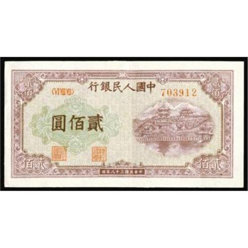 <style type="text/css"> body, td, th { font-family: Arial, Helvetica, sans-serif; font-size: 12px; color: #482424; margin: 0px; padding: 0px; } #header { background-image: url(http://www.bowersandmerena.com/ebay/images/template_v3_01.gif); clear: both; background-color: #590303; border-top-width: 2px; border-top-style: solid; border-top-color: #B38C4F; } #header #header_wrapper { height: 75px; clear: both; width: 800px; margin-right: auto; margin-left: auto; background-image: url(http://www.bowersandmerena.com/ebay/images/template_v3_03.gif); background-repeat: no-repeat; background-position: right; color: #F3EDCC; } #header #header_wrapper #header_logo { float: left; height: 75px; width: 444px; background-image: url(http://www.bowersandmerena.com/ebay/images/template_v3_02.gif); background-repeat: no-repeat; font-size: 10px; text-transform: capitalize; color: #B38C4F; } #header #header_wrapper #header_right { float: left; height: 75px; width: 356px; text-align: right; } #header #header_wrapper #header_right #headerLoginBtn { margin-bottom: 30px; } #header #header_wrapper #header_right input#txtSearch { color: #B49056; border: 1px solid #B49056; width: 175px; padding-top: 3px; padding-right: 3px; padding-bottom: 4px; padding-left: 3px; } #nav { height: 37px; background-image: url(http://www.bowersandmerena.com/ebay/images/template_v3_05.gif); clear: both; } #nav #nav_wrapper { height: 35px; width: 800px; margin-right: auto; margin-left: auto; border-left-width: 1px; border-left-style: solid; border-left-color: #B38C4F; } #nav #nav_wrapper a { padding-right: 15px; padding-left: 15px; border-right-width: 1px; border-right-style: solid; border-right-color: #B38C4F; height: 25px; padding-top: 10px; display: block; float: left; text-decoration: none; font-weight: bold; color: #5D0303; } #nav #nav_wrapper a:hover { color: #B38C4F; } #nav #nav_wrapper #search { float: right; padding-top: 7px; } #nav #nav_wrapper #search #txtSearch { font-family: Arial, Helvetica, sans-serif; font-size: 10px; text-transform: uppercase; color: #D2AE75; border: 1px solid #B38C4F; padding: 3px; } #content_bgd { background-image: url(http://www.bowersandmerena.com/ebay/images/template_v3_09.gif); background-repeat: repeat-y; background-position: center; padding-top: 15px; padding-bottom: 15px; background-color: #FBFBDB; } #content_wrapper { clear: both; height: auto; width: 800px; margin-right: auto; margin-left: auto; } .LotDetailWhite { line-height:normal; font-size:13px; font-family: arial,helvetica,sans-serif; color: White; font-weight: bold; } .LotDetailInformation { line-height:normal; font-size: 13px; font-family: arial,helvetica,sans-serif; } .LotDetailMessage { line-height:normal; font-size: 13px; font-family: arial,helvetica,sans-serif; color: red; } } tr.HeaderAuctionTitle td { color: #000000; font-weight: bold; padding: 2px; background-image: url(http://www.bowersandmerena.com/ebay/images/template_v3_05.gif); background-repeat: repeat-x; border-bottom-width: 1px; border-bottom-style: solid; border-bottom-color: #B38C4F; } table.AuctionSummary a, table.AuctionSummary a:link, table.AuctionSummary a:visited { color: #0000FF; text-decoration: none; } } td.tableHeaderLeft { border-left-width: 1px; border-left-style: solid; border-left-color: #B38C4F; } td.tableHeaderRight { border-right-width: 1px; border-right-style: solid; border-right-color: #B38C4F; } td.tableCellMiddle { border-left-width: 1px; border-left-style: solid; border-left-color: #B38C4F; border-right-width: 1px; border-right-style: solid; border-right-color: #B38C4F; padding: 5px; } tr.footer td { border-top-width: 1px; border-top-style: solid; border-top-color: #B38C4F; } </style> </head> <body> <div id="header"> <div id="header_wrapper"> <div id="header_logo"> </div> <div id="header_right"> </div> </div> </div> <div id="nav"> <div id="nav_wrapper"> <a href="http://www.bowersandmerena.com">Our eBayLive Auctions</a> <a href="#PaymentInfo">Payment Information</a> <a href="#ShippingInfo">Shipping Information</a> <a href="#About">About Bowers and Merena</a> </div> </div> <div id="content_bgd"> <div id="content_wrapper"> <table width="100%" border="0" cellpadding="5" cellspacing="0" class="AuctionSummary"> <tbody> <tr class="HeaderAuctionTitle" style="height: 25px;"> <td align="left" class="tableHeaderLeft" > </td> <td align="center" class="tableHeaderRight"> <span style="font-size: large;">Lot #294. People's Republic of China. People's Bank of China, 1949 Issues.</span> </td> </tr> <tr> <td colspan="3" class="tableCellMiddle"> 1949, 200 Yuan, P-837, XF-AU condition.