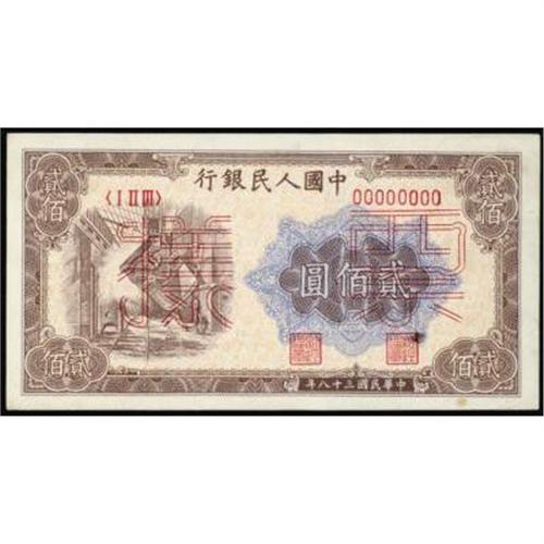 <style type="text/css"> body, td, th { font-family: Arial, Helvetica, sans-serif; font-size: 12px; color: #482424; margin: 0px; padding: 0px; } #header { background-image: url(http://www.bowersandmerena.com/ebay/images/template_v3_01.gif); clear: both; background-color: #590303; border-top-width: 2px; border-top-style: solid; border-top-color: #B38C4F; } #header #header_wrapper { height: 75px; clear: both; width: 800px; margin-right: auto; margin-left: auto; background-image: url(http://www.bowersandmerena.com/ebay/images/template_v3_03.gif); background-repeat: no-repeat; background-position: right; color: #F3EDCC; } #header #header_wrapper #header_logo { float: left; height: 75px; width: 444px; background-image: url(http://www.bowersandmerena.com/ebay/images/template_v3_02.gif); background-repeat: no-repeat; font-size: 10px; text-transform: capitalize; color: #B38C4F; } #header #header_wrapper #header_right { float: left; height: 75px; width: 356px; text-align: right; } #header #header_wrapper #header_right #headerLoginBtn { margin-bottom: 30px; } #header #header_wrapper #header_right input#txtSearch { color: #B49056; border: 1px solid #B49056; width: 175px; padding-top: 3px; padding-right: 3px; padding-bottom: 4px; padding-left: 3px; } #nav { height: 37px; background-image: url(http://www.bowersandmerena.com/ebay/images/template_v3_05.gif); clear: both; } #nav #nav_wrapper { height: 35px; width: 800px; margin-right: auto; margin-left: auto; border-left-width: 1px; border-left-style: solid; border-left-color: #B38C4F; } #nav #nav_wrapper a { padding-right: 15px; padding-left: 15px; border-right-width: 1px; border-right-style: solid; border-right-color: #B38C4F; height: 25px; padding-top: 10px; display: block; float: left; text-decoration: none; font-weight: bold; color: #5D0303; } #nav #nav_wrapper a:hover { color: #B38C4F; } #nav #nav_wrapper #search { float: right; padding-top: 7px; } #nav #nav_wrapper #search #txtSearch { font-family: Arial, Helvetica, sans-serif; font-size: 10px; text-transform: uppercase; color: #D2AE75; border: 1px solid #B38C4F; padding: 3px; } #content_bgd { background-image: url(http://www.bowersandmerena.com/ebay/images/template_v3_09.gif); background-repeat: repeat-y; background-position: center; padding-top: 15px; padding-bottom: 15px; background-color: #FBFBDB; } #content_wrapper { clear: both; height: auto; width: 800px; margin-right: auto; margin-left: auto; } .LotDetailWhite { line-height:normal; font-size:13px; font-family: arial,helvetica,sans-serif; color: White; font-weight: bold; } .LotDetailInformation { line-height:normal; font-size: 13px; font-family: arial,helvetica,sans-serif; } .LotDetailMessage { line-height:normal; font-size: 13px; font-family: arial,helvetica,sans-serif; color: red; } } tr.HeaderAuctionTitle td { color: #000000; font-weight: bold; padding: 2px; background-image: url(http://www.bowersandmerena.com/ebay/images/template_v3_05.gif); background-repeat: repeat-x; border-bottom-width: 1px; border-bottom-style: solid; border-bottom-color: #B38C4F; } table.AuctionSummary a, table.AuctionSummary a:link, table.AuctionSummary a:visited { color: #0000FF; text-decoration: none; } } td.tableHeaderLeft { border-left-width: 1px; border-left-style: solid; border-left-color: #B38C4F; } td.tableHeaderRight { border-right-width: 1px; border-right-style: solid; border-right-color: #B38C4F; } td.tableCellMiddle { border-left-width: 1px; border-left-style: solid; border-left-color: #B38C4F; border-right-width: 1px; border-right-style: solid; border-right-color: #B38C4F; padding: 5px; } tr.footer td { border-top-width: 1px; border-top-style: solid; border-top-color: #B38C4F; } </style> </head> <body> <div id="header"> <div id="header_wrapper"> <div id="header_logo"> </div> <div id="header_right"> </div> </div> </div> <div id="nav"> <div id="nav_wrapper"> <a href="http://www.bowersandmerena.com">Our eBayLive Auctions</a> <a href="#PaymentInfo">Payment Information</a> <a href="#ShippingInfo">Shipping Information</a> <a href="#About">About Bowers and Merena</a> </div> </div> <div id="content_bgd"> <div id="content_wrapper"> <table width="100%" border="0" cellpadding="5" cellspacing="0" class="AuctionSummary"> <tbody> <tr class="HeaderAuctionTitle" style="height: 25px;"> <td align="left" class="tableHeaderLeft" > </td> <td align="center" class="tableHeaderRight"> <span style="font-size: large;">Lot #298. People's Republic of China. People's Bank of China, 1949 Issues.</span> </td> </tr> <tr> <td colspan="3" class="tableCellMiddle"> 1949, 200 Yuan, P-840 Unlisted Uniface Specimen face and back, Unc. condition with some light toning.
