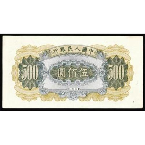 <style type="text/css"> body, td, th { font-family: Arial, Helvetica, sans-serif; font-size: 12px; color: #482424; margin: 0px; padding: 0px; } #header { background-image: url(http://www.bowersandmerena.com/ebay/images/template_v3_01.gif); clear: both; background-color: #590303; border-top-width: 2px; border-top-style: solid; border-top-color: #B38C4F; } #header #header_wrapper { height: 75px; clear: both; width: 800px; margin-right: auto; margin-left: auto; background-image: url(http://www.bowersandmerena.com/ebay/images/template_v3_03.gif); background-repeat: no-repeat; background-position: right; color: #F3EDCC; } #header #header_wrapper #header_logo { float: left; height: 75px; width: 444px; background-image: url(http://www.bowersandmerena.com/ebay/images/template_v3_02.gif); background-repeat: no-repeat; font-size: 10px; text-transform: capitalize; color: #B38C4F; } #header #header_wrapper #header_right { float: left; height: 75px; width: 356px; text-align: right; } #header #header_wrapper #header_right #headerLoginBtn { margin-bottom: 30px; } #header #header_wrapper #header_right input#txtSearch { color: #B49056; border: 1px solid #B49056; width: 175px; padding-top: 3px; padding-right: 3px; padding-bottom: 4px; padding-left: 3px; } #nav { height: 37px; background-image: url(http://www.bowersandmerena.com/ebay/images/template_v3_05.gif); clear: both; } #nav #nav_wrapper { height: 35px; width: 800px; margin-right: auto; margin-left: auto; border-left-width: 1px; border-left-style: solid; border-left-color: #B38C4F; } #nav #nav_wrapper a { padding-right: 15px; padding-left: 15px; border-right-width: 1px; border-right-style: solid; border-right-color: #B38C4F; height: 25px; padding-top: 10px; display: block; float: left; text-decoration: none; font-weight: bold; color: #5D0303; } #nav #nav_wrapper a:hover { color: #B38C4F; } #nav #nav_wrapper #search { float: right; padding-top: 7px; } #nav #nav_wrapper #search #txtSearch { font-family: Arial, Helvetica, sans-serif; font-size: 10px; text-transform: uppercase; color: #D2AE75; border: 1px solid #B38C4F; padding: 3px; } #content_bgd { background-image: url(http://www.bowersandmerena.com/ebay/images/template_v3_09.gif); background-repeat: repeat-y; background-position: center; padding-top: 15px; padding-bottom: 15px; background-color: #FBFBDB; } #content_wrapper { clear: both; height: auto; width: 800px; margin-right: auto; margin-left: auto; } .LotDetailWhite { line-height:normal; font-size:13px; font-family: arial,helvetica,sans-serif; color: White; font-weight: bold; } .LotDetailInformation { line-height:normal; font-size: 13px; font-family: arial,helvetica,sans-serif; } .LotDetailMessage { line-height:normal; font-size: 13px; font-family: arial,helvetica,sans-serif; color: red; } } tr.HeaderAuctionTitle td { color: #000000; font-weight: bold; padding: 2px; background-image: url(http://www.bowersandmerena.com/ebay/images/template_v3_05.gif); background-repeat: repeat-x; border-bottom-width: 1px; border-bottom-style: solid; border-bottom-color: #B38C4F; } table.AuctionSummary a, table.AuctionSummary a:link, table.AuctionSummary a:visited { color: #0000FF; text-decoration: none; } } td.tableHeaderLeft { border-left-width: 1px; border-left-style: solid; border-left-color: #B38C4F; } td.tableHeaderRight { border-right-width: 1px; border-right-style: solid; border-right-color: #B38C4F; } td.tableCellMiddle { border-left-width: 1px; border-left-style: solid; border-left-color: #B38C4F; border-right-width: 1px; border-right-style: solid; border-right-color: #B38C4F; padding: 5px; } tr.footer td { border-top-width: 1px; border-top-style: solid; border-top-color: #B38C4F; } </style> </head> <body> <div id="header"> <div id="header_wrapper"> <div id="header_logo"> </div> <div id="header_right"> </div> </div> </div> <div id="nav"> <div id="nav_wrapper"> <a href="http://www.bowersandmerena.com">Our eBayLive Auctions</a> <a href="#PaymentInfo">Payment Information</a> <a href="#ShippingInfo">Shipping Information</a> <a href="#About">About Bowers and Merena</a> </div> </div> <div id="content_bgd"> <div id="content_wrapper"> <table width="100%" border="0" cellpadding="5" cellspacing="0" class="AuctionSummary"> <tbody> <tr class="HeaderAuctionTitle" style="height: 25px;"> <td align="left" class="tableHeaderLeft" > </td> <td align="center" class="tableHeaderRight"> <span style="font-size: large;">Lot #303. People's Republic of China. People's Bank of China, 1949 Issues.</span> </td> </tr> <tr> <td colspan="3" class="tableCellMiddle"> 1949, 500 Yuan, P-846, Unc. condition.