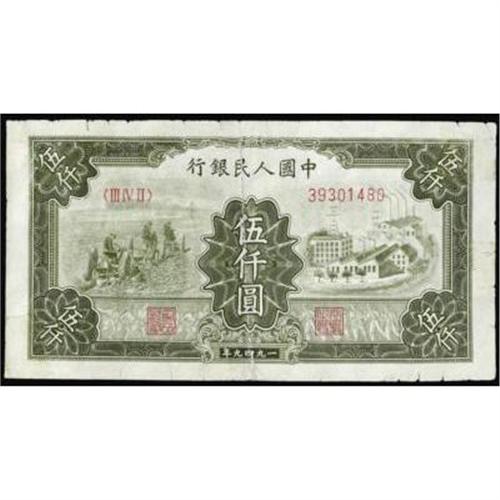 <style type="text/css"> body, td, th { font-family: Arial, Helvetica, sans-serif; font-size: 12px; color: #482424; margin: 0px; padding: 0px; } #header { background-image: url(http://www.bowersandmerena.com/ebay/images/template_v3_01.gif); clear: both; background-color: #590303; border-top-width: 2px; border-top-style: solid; border-top-color: #B38C4F; } #header #header_wrapper { height: 75px; clear: both; width: 800px; margin-right: auto; margin-left: auto; background-image: url(http://www.bowersandmerena.com/ebay/images/template_v3_03.gif); background-repeat: no-repeat; background-position: right; color: #F3EDCC; } #header #header_wrapper #header_logo { float: left; height: 75px; width: 444px; background-image: url(http://www.bowersandmerena.com/ebay/images/template_v3_02.gif); background-repeat: no-repeat; font-size: 10px; text-transform: capitalize; color: #B38C4F; } #header #header_wrapper #header_right { float: left; height: 75px; width: 356px; text-align: right; } #header #header_wrapper #header_right #headerLoginBtn { margin-bottom: 30px; } #header #header_wrapper #header_right input#txtSearch { color: #B49056; border: 1px solid #B49056; width: 175px; padding-top: 3px; padding-right: 3px; padding-bottom: 4px; padding-left: 3px; } #nav { height: 37px; background-image: url(http://www.bowersandmerena.com/ebay/images/template_v3_05.gif); clear: both; } #nav #nav_wrapper { height: 35px; width: 800px; margin-right: auto; margin-left: auto; border-left-width: 1px; border-left-style: solid; border-left-color: #B38C4F; } #nav #nav_wrapper a { padding-right: 15px; padding-left: 15px; border-right-width: 1px; border-right-style: solid; border-right-color: #B38C4F; height: 25px; padding-top: 10px; display: block; float: left; text-decoration: none; font-weight: bold; color: #5D0303; } #nav #nav_wrapper a:hover { color: #B38C4F; } #nav #nav_wrapper #search { float: right; padding-top: 7px; } #nav #nav_wrapper #search #txtSearch { font-family: Arial, Helvetica, sans-serif; font-size: 10px; text-transform: uppercase; color: #D2AE75; border: 1px solid #B38C4F; padding: 3px; } #content_bgd { background-image: url(http://www.bowersandmerena.com/ebay/images/template_v3_09.gif); background-repeat: repeat-y; background-position: center; padding-top: 15px; padding-bottom: 15px; background-color: #FBFBDB; } #content_wrapper { clear: both; height: auto; width: 800px; margin-right: auto; margin-left: auto; } .LotDetailWhite { line-height:normal; font-size:13px; font-family: arial,helvetica,sans-serif; color: White; font-weight: bold; } .LotDetailInformation { line-height:normal; font-size: 13px; font-family: arial,helvetica,sans-serif; } .LotDetailMessage { line-height:normal; font-size: 13px; font-family: arial,helvetica,sans-serif; color: red; } } tr.HeaderAuctionTitle td { color: #000000; font-weight: bold; padding: 2px; background-image: url(http://www.bowersandmerena.com/ebay/images/template_v3_05.gif); background-repeat: repeat-x; border-bottom-width: 1px; border-bottom-style: solid; border-bottom-color: #B38C4F; } table.AuctionSummary a, table.AuctionSummary a:link, table.AuctionSummary a:visited { color: #0000FF; text-decoration: none; } } td.tableHeaderLeft { border-left-width: 1px; border-left-style: solid; border-left-color: #B38C4F; } td.tableHeaderRight { border-right-width: 1px; border-right-style: solid; border-right-color: #B38C4F; } td.tableCellMiddle { border-left-width: 1px; border-left-style: solid; border-left-color: #B38C4F; border-right-width: 1px; border-right-style: solid; border-right-color: #B38C4F; padding: 5px; } tr.footer td { border-top-width: 1px; border-top-style: solid; border-top-color: #B38C4F; } </style> </head> <body> <div id="header"> <div id="header_wrapper"> <div id="header_logo"> </div> <div id="header_right"> </div> </div> </div> <div id="nav"> <div id="nav_wrapper"> <a href="http://www.bowersandmerena.com">Our eBayLive Auctions</a> <a href="#PaymentInfo">Payment Information</a> <a href="#ShippingInfo">Shipping Information</a> <a href="#About">About Bowers and Merena</a> </div> </div> <div id="content_bgd"> <div id="content_wrapper"> <table width="100%" border="0" cellpadding="5" cellspacing="0" class="AuctionSummary"> <tbody> <tr class="HeaderAuctionTitle" style="height: 25px;"> <td align="left" class="tableHeaderLeft" > </td> <td align="center" class="tableHeaderRight"> <span style="font-size: large;">Lot #309. People's Republic of China. People's Bank of China, 1949 Issues.</span> </td> </tr> <tr> <td colspan="3" class="tableCellMiddle"> Lot of 3 notes. 1949, 5000 Yuan, P-852, Fine condition; 10,000 Yuan, P-853, 2 examples, both in Unc. condition.
