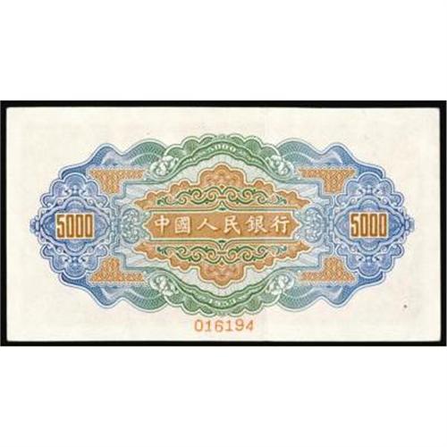 <style type="text/css"> body, td, th { font-family: Arial, Helvetica, sans-serif; font-size: 12px; color: #482424; margin: 0px; padding: 0px; } #header { background-image: url(http://www.bowersandmerena.com/ebay/images/template_v3_01.gif); clear: both; background-color: #590303; border-top-width: 2px; border-top-style: solid; border-top-color: #B38C4F; } #header #header_wrapper { height: 75px; clear: both; width: 800px; margin-right: auto; margin-left: auto; background-image: url(http://www.bowersandmerena.com/ebay/images/template_v3_03.gif); background-repeat: no-repeat; background-position: right; color: #F3EDCC; } #header #header_wrapper #header_logo { float: left; height: 75px; width: 444px; background-image: url(http://www.bowersandmerena.com/ebay/images/template_v3_02.gif); background-repeat: no-repeat; font-size: 10px; text-transform: capitalize; color: #B38C4F; } #header #header_wrapper #header_right { float: left; height: 75px; width: 356px; text-align: right; } #header #header_wrapper #header_right #headerLoginBtn { margin-bottom: 30px; } #header #header_wrapper #header_right input#txtSearch { color: #B49056; border: 1px solid #B49056; width: 175px; padding-top: 3px; padding-right: 3px; padding-bottom: 4px; padding-left: 3px; } #nav { height: 37px; background-image: url(http://www.bowersandmerena.com/ebay/images/template_v3_05.gif); clear: both; } #nav #nav_wrapper { height: 35px; width: 800px; margin-right: auto; margin-left: auto; border-left-width: 1px; border-left-style: solid; border-left-color: #B38C4F; } #nav #nav_wrapper a { padding-right: 15px; padding-left: 15px; border-right-width: 1px; border-right-style: solid; border-right-color: #B38C4F; height: 25px; padding-top: 10px; display: block; float: left; text-decoration: none; font-weight: bold; color: #5D0303; } #nav #nav_wrapper a:hover { color: #B38C4F; } #nav #nav_wrapper #search { float: right; padding-top: 7px; } #nav #nav_wrapper #search #txtSearch { font-family: Arial, Helvetica, sans-serif; font-size: 10px; text-transform: uppercase; color: #D2AE75; border: 1px solid #B38C4F; padding: 3px; } #content_bgd { background-image: url(http://www.bowersandmerena.com/ebay/images/template_v3_09.gif); background-repeat: repeat-y; background-position: center; padding-top: 15px; padding-bottom: 15px; background-color: #FBFBDB; } #content_wrapper { clear: both; height: auto; width: 800px; margin-right: auto; margin-left: auto; } .LotDetailWhite { line-height:normal; font-size:13px; font-family: arial,helvetica,sans-serif; color: White; font-weight: bold; } .LotDetailInformation { line-height:normal; font-size: 13px; font-family: arial,helvetica,sans-serif; } .LotDetailMessage { line-height:normal; font-size: 13px; font-family: arial,helvetica,sans-serif; color: red; } } tr.HeaderAuctionTitle td { color: #000000; font-weight: bold; padding: 2px; background-image: url(http://www.bowersandmerena.com/ebay/images/template_v3_05.gif); background-repeat: repeat-x; border-bottom-width: 1px; border-bottom-style: solid; border-bottom-color: #B38C4F; } table.AuctionSummary a, table.AuctionSummary a:link, table.AuctionSummary a:visited { color: #0000FF; text-decoration: none; } } td.tableHeaderLeft { border-left-width: 1px; border-left-style: solid; border-left-color: #B38C4F; } td.tableHeaderRight { border-right-width: 1px; border-right-style: solid; border-right-color: #B38C4F; } td.tableCellMiddle { border-left-width: 1px; border-left-style: solid; border-left-color: #B38C4F; border-right-width: 1px; border-right-style: solid; border-right-color: #B38C4F; padding: 5px; } tr.footer td { border-top-width: 1px; border-top-style: solid; border-top-color: #B38C4F; } </style> </head> <body> <div id="header"> <div id="header_wrapper"> <div id="header_logo"> </div> <div id="header_right"> </div> </div> </div> <div id="nav"> <div id="nav_wrapper"> <a href="http://www.bowersandmerena.com">Our eBayLive Auctions</a> <a href="#PaymentInfo">Payment Information</a> <a href="#ShippingInfo">Shipping Information</a> <a href="#About">About Bowers and Merena</a> </div> </div> <div id="content_bgd"> <div id="content_wrapper"> <table width="100%" border="0" cellpadding="5" cellspacing="0" class="AuctionSummary"> <tbody> <tr class="HeaderAuctionTitle" style="height: 25px;"> <td align="left" class="tableHeaderLeft" > </td> <td align="center" class="tableHeaderRight"> <span style="font-size: large;">Lot #313. People's Republic of China. People's Bank of China, 1953 Issues.</span> </td> </tr> <tr> <td colspan="3" class="tableCellMiddle"> 1953, 5,000 Yuan, P-859s Specimen, AU condition.
