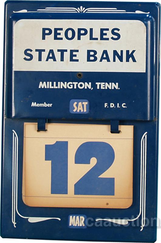 "Peoples State Bank" Tin Flip Days Calendar Sign, complete - 10" x 15"