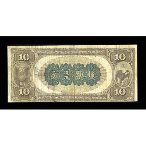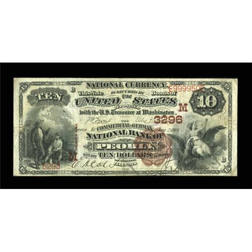 <B>Peoria, IL</B></I> - $10 1882 Brown Back Fr. 490 <B>The Commercial German NB</B></I> Ch. # (M)3296<BR> Technically a bit better than the <B>Fine</B></I> grade assigned due to the one inch margin split to the left of the president's signature. Plenty of eye appeal and great pen signatures offset this problem. A few stray pen marks are seen on the back.<BR><BR><b>Shipping:</b> Coins & Currency (<a target="_blank" href="http://www.heritageauctions.com/common/shipping.php">view shipping information</a>)