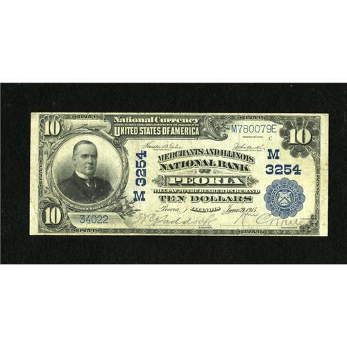 <B>Peoria, IL</B></I> - $10 1902 Plain Back Fr. 632 <B>Merchants & Illinois NB</B></I> Ch. # (M)3254<BR>Paddock and White signed this note bearing the institution's second title. <B>Fine.</B></I><BR><I>From The Lincoln Collection</B></I><BR><BR><b>Shipping:</b> Coins & Currency (<a target="_blank" href="http://www.heritageauctions.com/common/shipping.php">view shipping information</a>)
