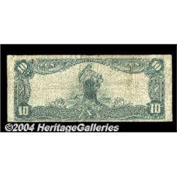 Peoria, IL - $10 1902 Plain Back Fr. 632 Merchants & Illinois NB Ch. #(M) 3254A Very Good example from this central Illinois issuer. Peoria was prosperous enough to have no less than nine issuing banks. This particular institution issued under two titles, this being the second. With the addition of this piece to the census a total of nine $10 1902 Plain Backs have now been documented by serial number. The stamped signatures are stronger than the technical grade might imply. <BR><BR><B>Important notice:</B> Heritage usually auctions material at the rate of 200-250 lots per hour. On some occasions eBay Live bid software or the Internet may not be able to keep up with the pace of the auction. We recommend placing a realistic absentee bid now as insurance to avoid disappointment. Occasionally the auctioneer may eliminate or reject an eBay Live bid, and the auctioneer may also reopen a lot after the close of the eBay live bidding (usually because we missed an audience bid), and may reject your bid even if it shows you as the winning bidder. By bidding via eBay Live, you agree that Heritage may award the lot to another bidder at its sole discretion under the circumstances described above or any other reasonable circumstances. Since eBay bids are not shown to us until we open the lot on the floor, we treat those bids just like floor bids. In most cases the floor responds before the eBay bid is presented to us, due to Internet lag time, so for consistency we have made it a policy that floor bids are always considered first over tie eBay live bids. Also please note that all Heritage lots purchased through eBay Live carry a 20% Buyer's Premium. Please make sure you read the Terms and Conditions before you bid. <BR><BR><B>IMPORTANT ANNOUNCEMENT ABOUT RESERVES:</B> Heritage now divulges all reserves on its web site 7 days before every auction. If you want to know whether the reserve on this lot has been met, and if not, what the reserve amount is, please visit this lot page on the HeritageCoin.com web site, or email: bid@HeritageGalleries.com
