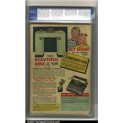 Pep #1 (MLJ, 1940) CGC VG/F 5.0 Off-white to white pages. Introducing the era of Patriotic heroes! Within these red, white and blue pages one finds the first appearance of the Shield, comics' first patriotic hero, by Irving Novick. An awesome cover of the Shield (G-Man extraordinaire) battling jack-booted robots and the introduction of the Comet by Jack Cole, along with a plethora of other Golden Age greats, rounds out this highly desirable issue. Definitely a classic and must-have book for collectors of Golden Age greats! A beautiful copy with only minor wear -- a one-inch cover split and half-inch tear on the front cover are the most notable defects. Overstreet 2002 GD 2.0 value = $846; FN 6.0 Value = $2,548. Important notice: We expect to be auctioning lots at the rate of 200-250 per hour. Sometimes eBay Premier live bid software cannot keep up with that pace, so we strongly recommend that you place a realistic proxy bid now as insurance to avoid disappointment. Also please note that all Heritage/CAA lots purchased through eBay Premier carry a 20% Buyer's Premium.