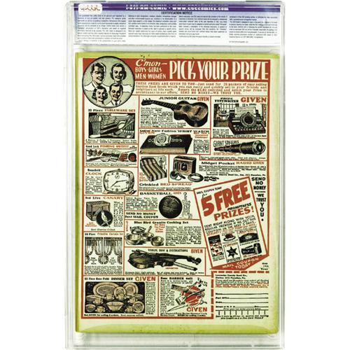 50. Since we cannot examine encapsulated notes or comics, they are sold "as is" without our grading opinion, and may not be returned for any reason. Auctioneer shall not be liable for any patent or latent defect or controversy pertaining to or arising from any encapsulated collectible. In any such instance, purchaser's remedy, if any, shall be solely against the service certifying the collectible.