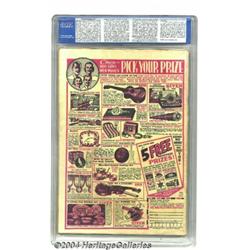 Pep Comics #3 (MLJ, 1940) CGC FN 6.0 Off-white to white pages. The Shield hurls mines down upon Nazi submarines that are threatening New York on this Irv Novick cover. The Comet appears inside, with art by Jack Cole, as well as the other usual features: Sergeant Boyle, Bentley of Scotland Yard, the Midshipman, and others. A nice copy, with most of the visible wear limited to the spine. This comic might be a bit more scarce than some of the other early issues, as it is currently the only CGC-graded copy of this issue. Overstreet 2003 FN 6.0 value = $522. Important notice: Heritage usually auctions material at the rate of 200-250 lots per hour. On some occasions eBay Live bid software or the Internet may not be able to keep up with the pace of the auction. We recommend placing a realistic absentee bid now as insurance to avoid disappointment. Occasionally the auctioneer may eliminate or reject an eBay Live bid, and the auctioneer may also reopen a lot after the close of the eBay live bidding (usually because we missed an audience bid), and may reject your bid even if it shows you as the winning bidder. By bidding via eBay Live, you agree that Heritage may award the lot to another bidder at its sole discretion under the circumstances described above or any other reasonable circumstances. Since eBay bids are not shown to us until we open the lot on the floor, we treat those bids just like floor bids. In most cases the floor responds before the eBay bid is presented to us, due to Internet lag time, so for consistency we have made it a policy that floor bids are always considered first over tie eBay live bids. Also please note that all Heritage lots purchased through eBay Live carry a 20% Buyer's Premium. Please make sure you read the Terms and Conditions before you bid.