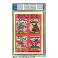 Pep Comics #6 (MLJ, 1940) CGC VF 8.0 Off-white to white pages. Irv Novick does the cover and art for this early issue of Pep Comics. Interesting cover image of the Shield scooping up evildoers with a steam shovel's bucket. A beautiful copy, this comic is clean and sharp, with a strong spine and tight staples. To date, this is the highest CGC-graded copy of this issue. Overstreet 2003 VF 8.0 value = $675. Important notice: Heritage usually auctions material at the rate of 200-250 lots per hour. On some occasions eBay Live bid software or the Internet may not be able to keep up with the pace of the auction. We recommend placing a realistic absentee bid now as insurance to avoid disappointment. Occasionally the auctioneer may eliminate or reject an eBay Live bid, and the auctioneer may also reopen a lot after the close of the eBay live bidding (usually because we missed an audience bid), and may reject your bid even if it shows you as the winning bidder. By bidding via eBay Live, you agree that Heritage may award the lot to another bidder at its sole discretion under the circumstances described above or any other reasonable circumstances. Since eBay bids are not shown to us until we open the lot on the floor, we treat those bids just like floor bids. In most cases the floor responds before the eBay bid is presented to us, due to Internet lag time, so for consistency we have made it a policy that floor bids are always considered first over tie eBay live bids. Also please note that all Heritage lots purchased through eBay Live carry a 20% Buyer's Premium. Please make sure you read the Terms and Conditions before you bid.