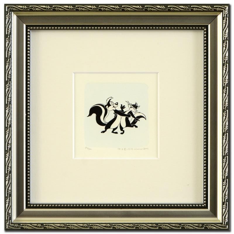 Pepe Le Pew Dancing (Large) is a limited edition etching on paper with hand-tinted coloring from Warner Bros. (dated 1999) and numbered! This piece comes framed. Includes a Certificate of Authenticity! Measures approx. 9" x 9" (with frame), 2.5" x 2" (image). Retail Price $200. PRICE INCUDES FREE SHIPPING IN THE U.S. - SHIPPING WILL BE ADDED TO YOUR INVOICE FOR ALL BUYERS OUTSIDE OF THE U.S.