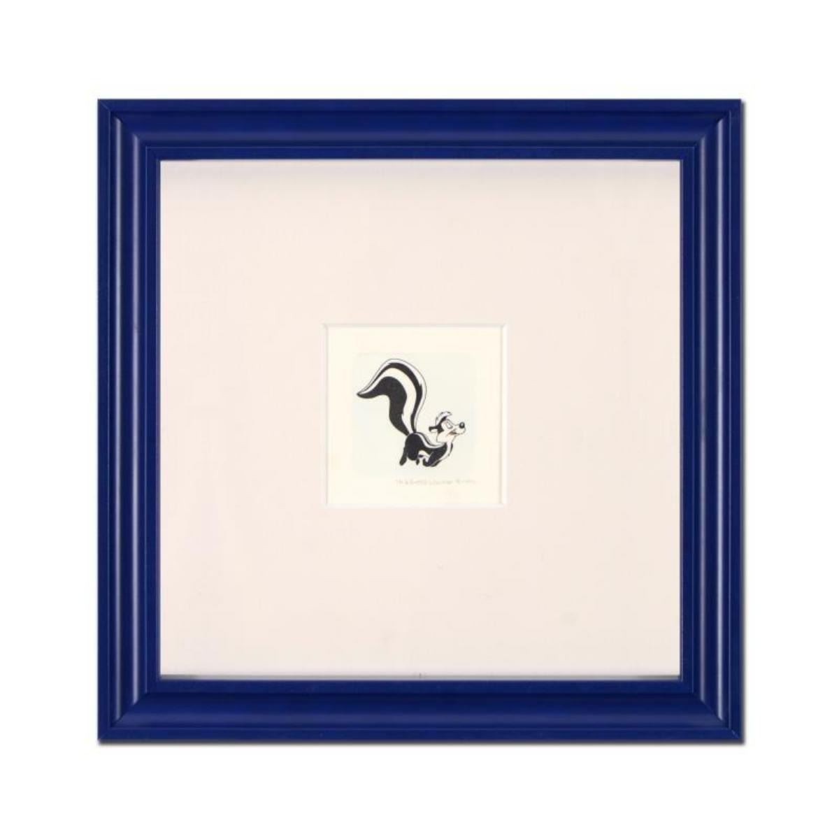 "Pepe Le Pew" is a limited edition etching on paper with hand-tinted coloring from Warner Bros, numbered and dated 1999. This piece comes framed. Measures approx. 9" x 9" (with frame), 2" x 2.5" (image). Reference #: 235693.