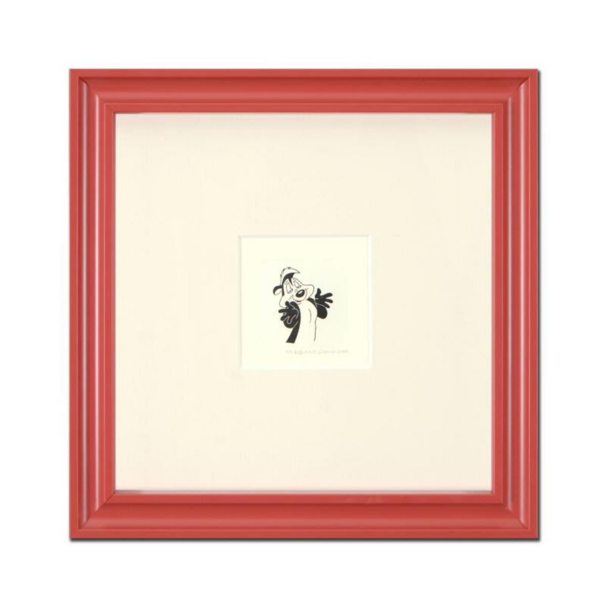 "Pepe Le Pew" is a limited edition etching on paper with hand-tinted coloring from Warner Bros, numbered and dated 1999. This piece comes framed. Measures approx. 9" x 9" (with frame), 2" x 2.5" (image). Reference #: 235694.