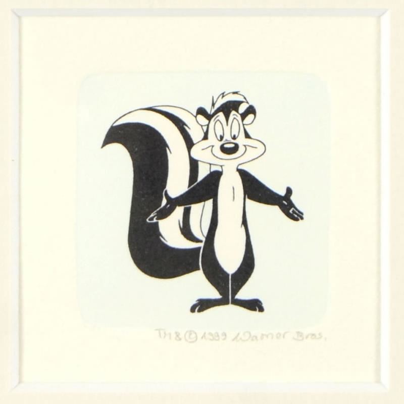"Pepe Le Pew" is a limited edition etching on paper with hand-tinted coloring from Warner Bros, numbered and dated 1999. This piece comes framed. Measures approx. 9" x 9" (with frame), 2" x 2.5" (image).