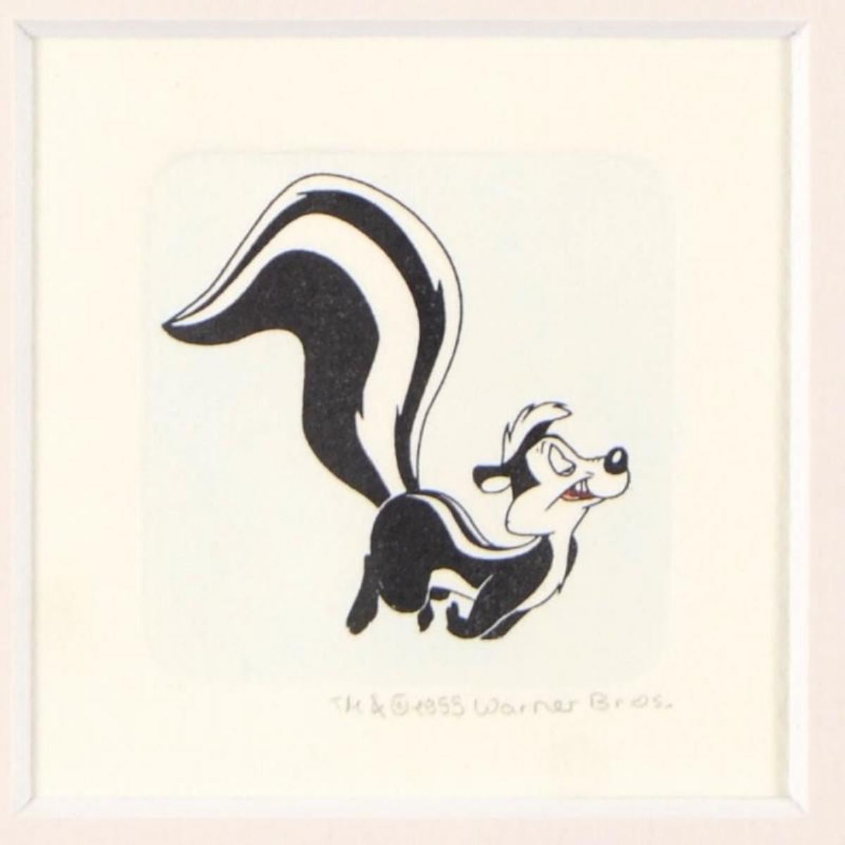 "Pepe Le Pew" is a limited edition etching on paper with hand-tinted coloring from Warner Bros, numbered and dated 1999. This piece comes framed. Measures approx. 9" x 9" (with frame), 2" x 2.5" (image).