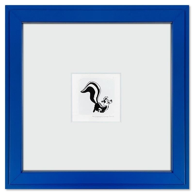"Pepe le Pew" is a limited edition etching on paper with hand tinted coloring from Warner Bros., numbered and dated 1999. This piece comes framed. Measures approx. 9" x 9" (frame), 1.5" x 1.5" (image).