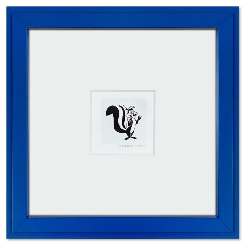 "Pepe le Pew" is a limited edition etching on paper with hand tinted coloring from Warner Bros., numbered and dated 1999. This piece comes framed. Measures approx. 9" x 9" (frame), 1.5" x 1.5" (image).