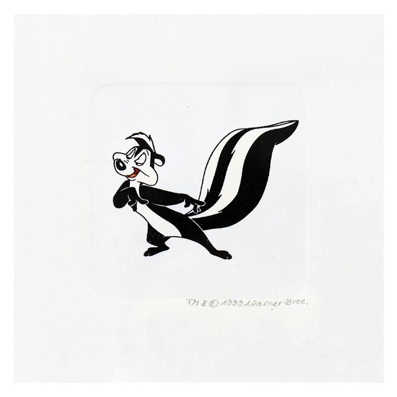 "Pepe le Pew" is a limited edition etching on paper with hand-tinted coloring from Warner Bros, numbered and dated 1999. This piece comes framed. Measures approximately 14" x 14" (with frame), 2.5" x 2.5" (image).