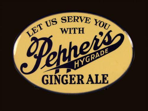 Peppers Ginger Ale Celluloid Sign. Mint condition. 6 1/2 X 4 1/2 inches.