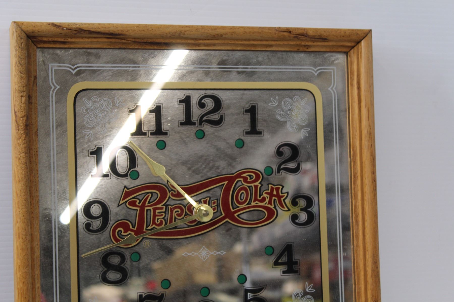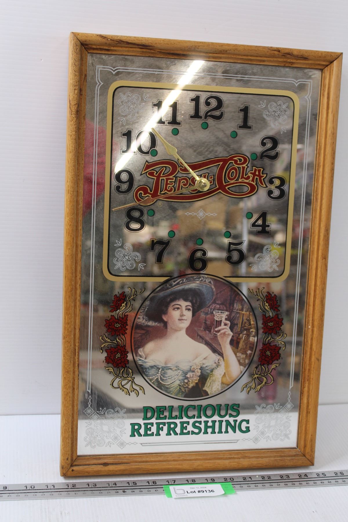 Pepsi Cola Battery Powered Mirrored Clock - Appears to Work - 13" x 23"