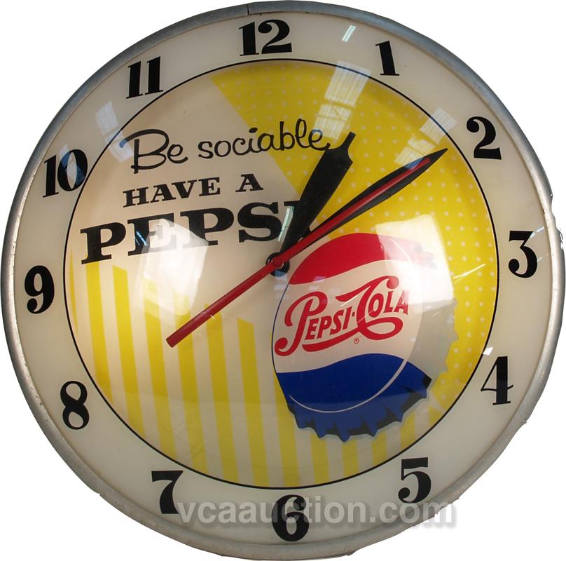 Pepsi-Cola "Be Sociable Have A Pepsi" Double Bubble Light-Up Clock c1950's, all original works - 15" diam