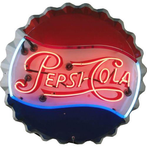 Pepsi-Cola Bottle Cap Sign w/ Neon 32" Diameter