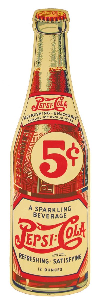 Pepsi Cola Die Cut Tin Sign. 1940, double dot. Great Color. Excellent condition. 8 X 29 1/2 inches.