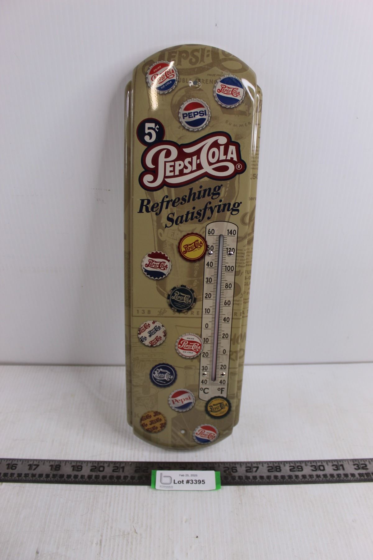 Pepsi-Cola Metal Sign Thermometer 17" x 5.5"