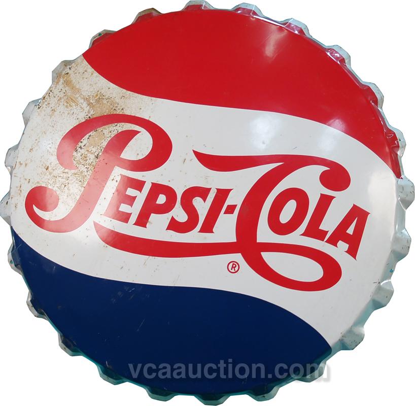 "Pepsi-Cola" Tin Bottle Cap Sign c1953 - 38" diam