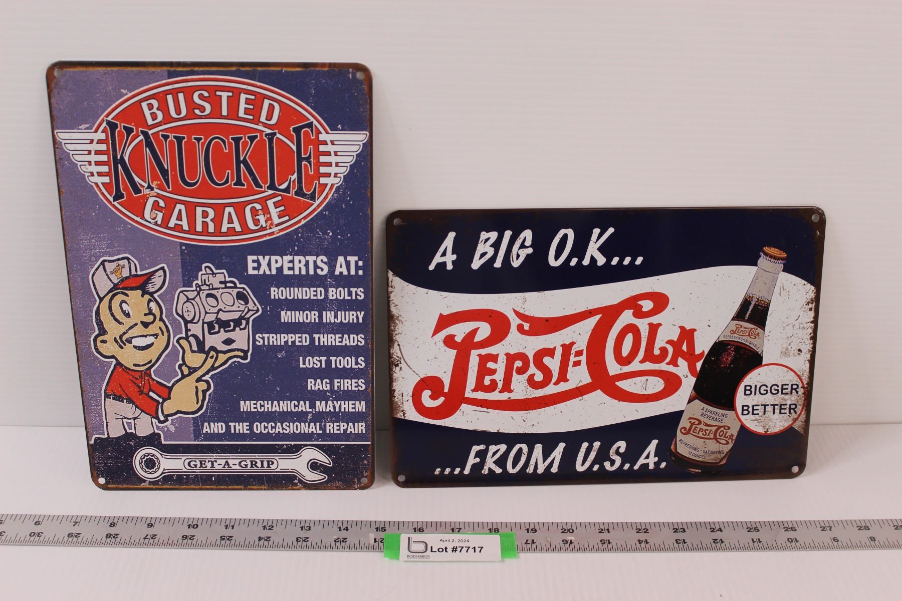 Pepsi-Cola Tin Sign, Busted Knuckle Garage - 12"x8"