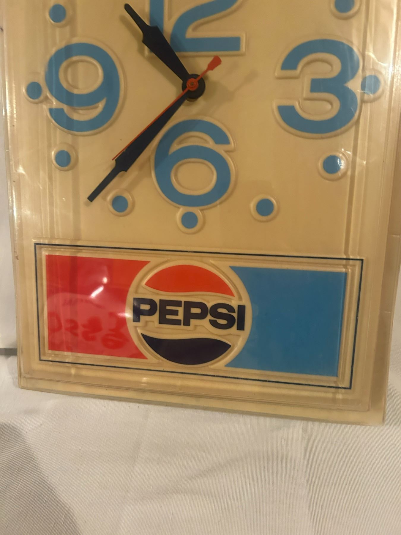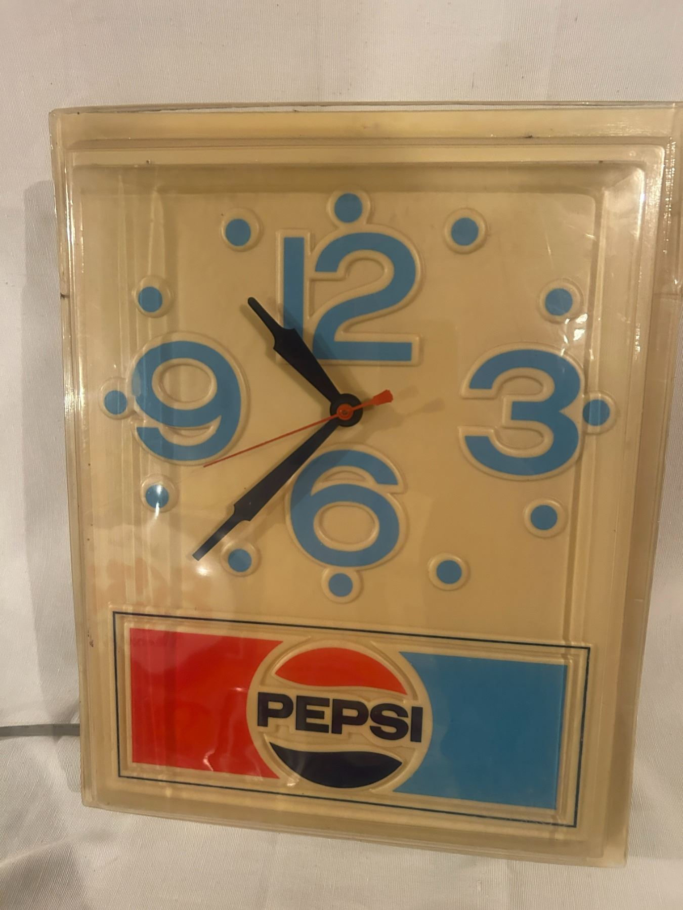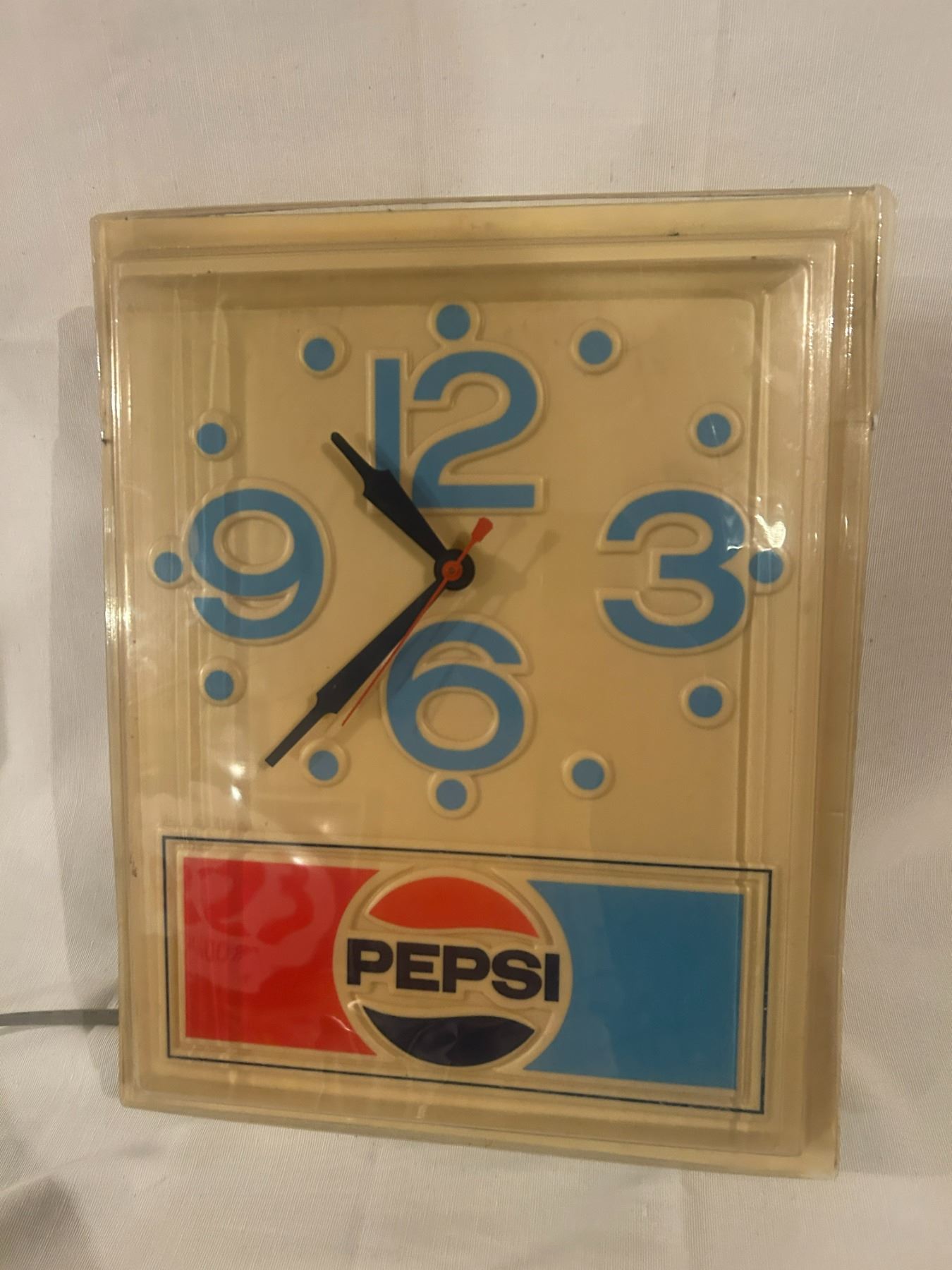 Pepsi Cola advertising clock - 17"x13", vintage, working , needs bulb