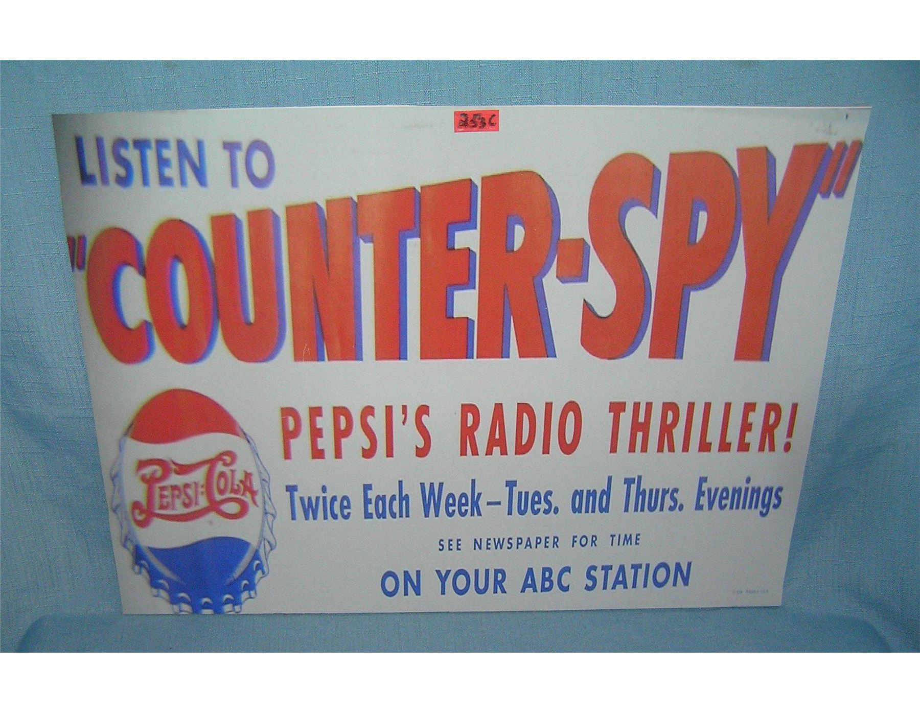 Pepsi Cola radio thriller show retro style advertising sign 12 inches by 16 inches on board est. value $40.00-$50.00