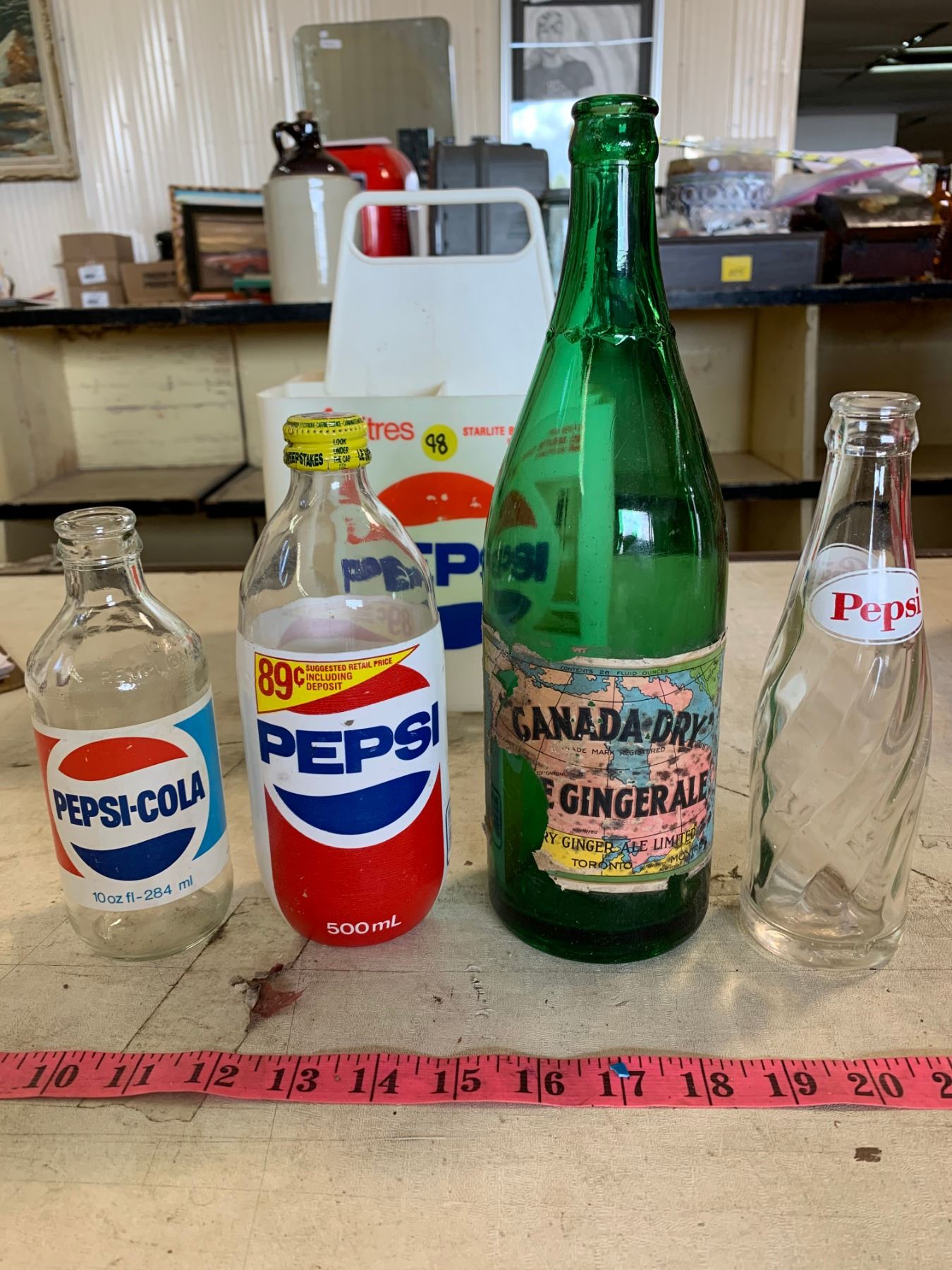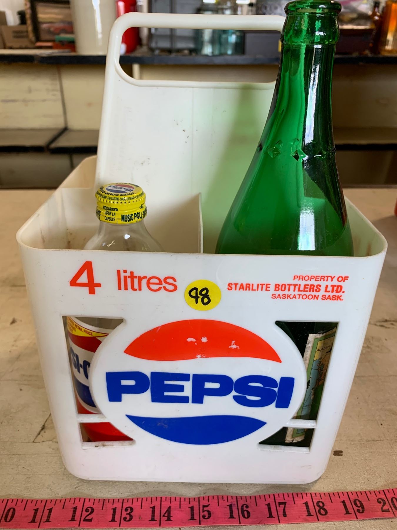 Pepsi Crate w/ 4 Assorted Vintage Bottles