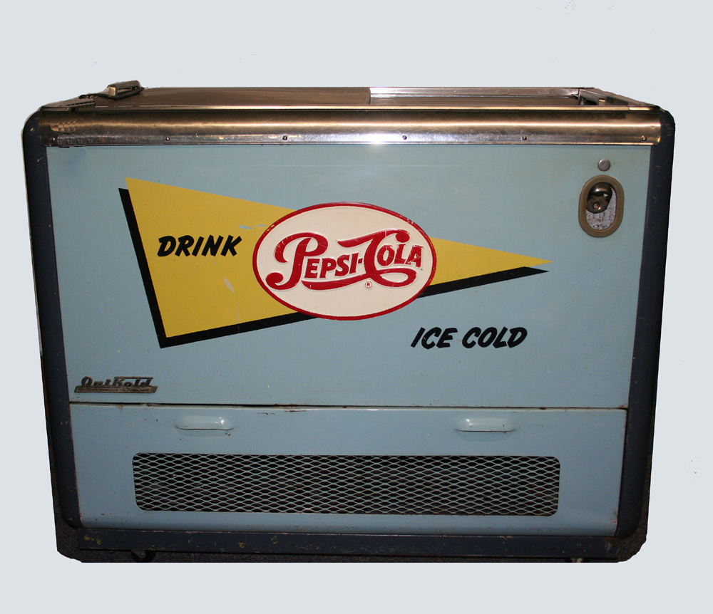 Chest Type Pepsi Machine measures approx. 43" x 25" x 37" H. A nice looking item.