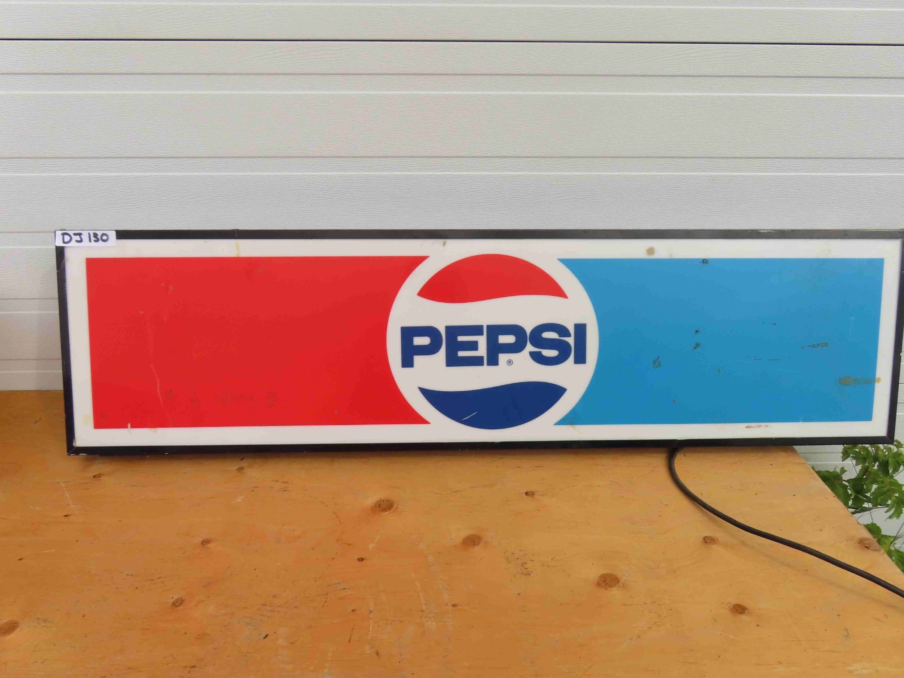 Pepsi Plastic Face Metal Box Cooler Topper Light Up Sign 53'' x 14'' x 4''