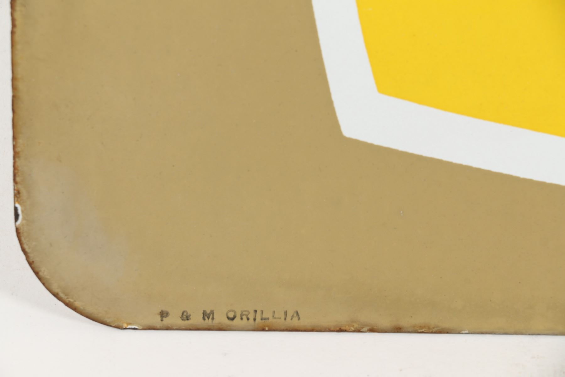 Canadian. Circa 1960. "P&M Orillia" lower left edge. 29.25" x 12". Scattered minor porcelain chips, mostly isolated to the edges. $200-300.