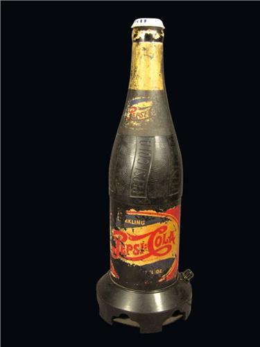 Pepsi Radio. Works, base is broken and glued back on, major paint loss otherwise fair condition. 23 1/2 inches tall.