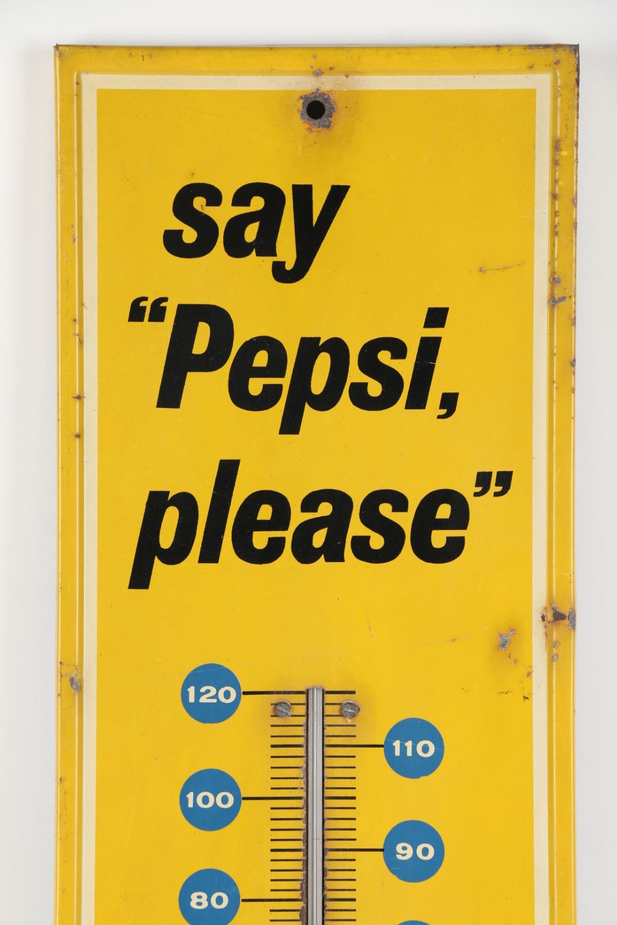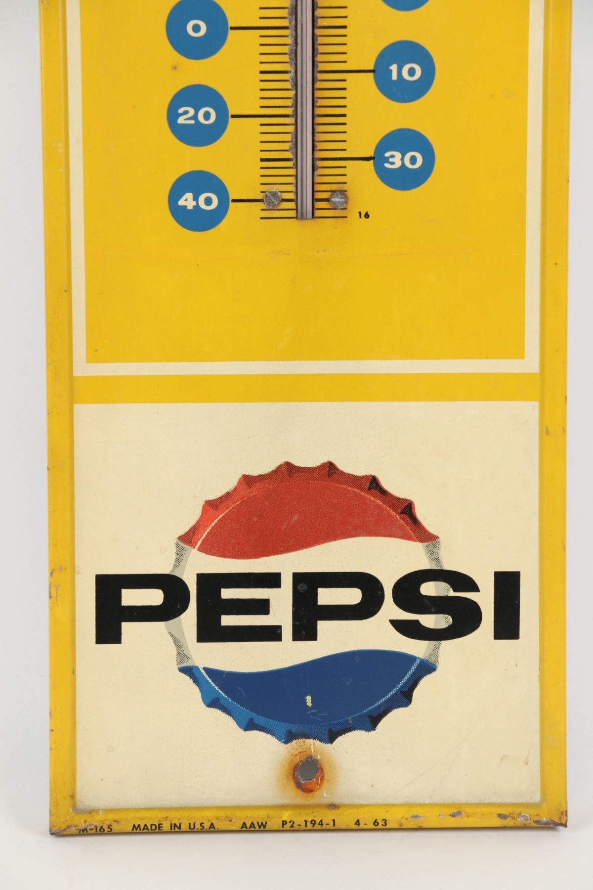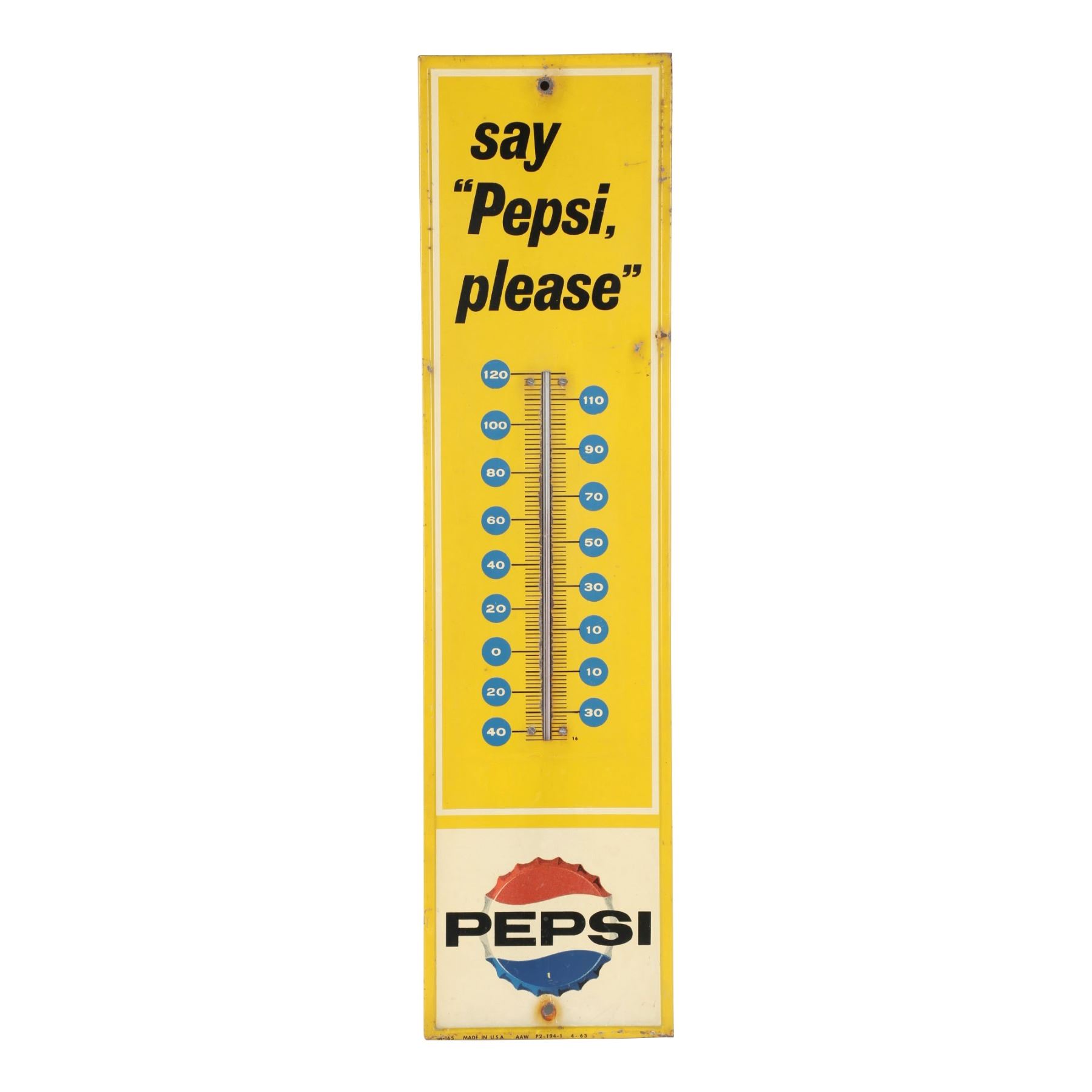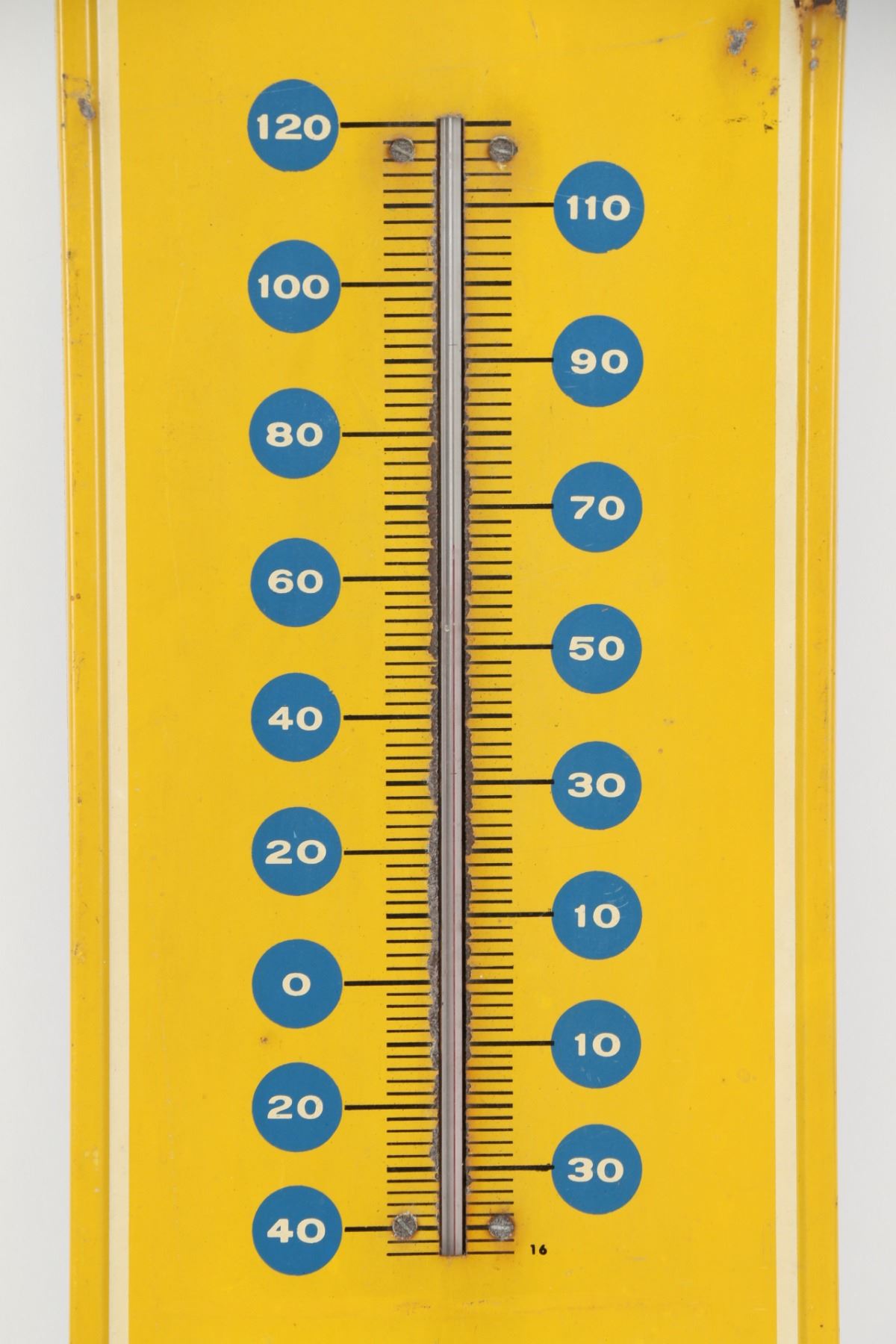 Marked, "M-165 Made in USA AAW P2-194-1 4-63". 28" x 7.25". Grommet and edge flakes, minor impressions, oxidization. Retains original functioning thermometer. $200-300.