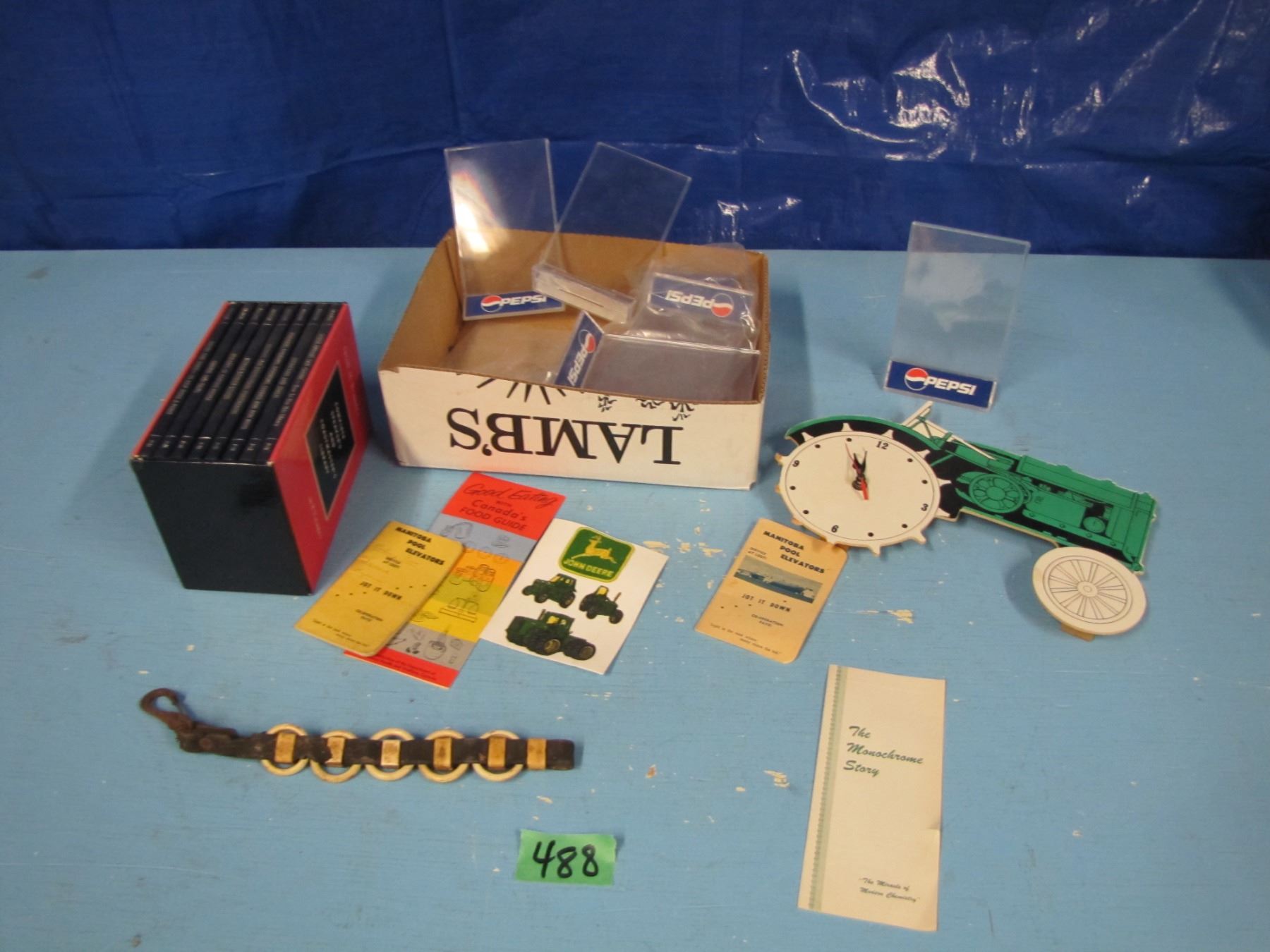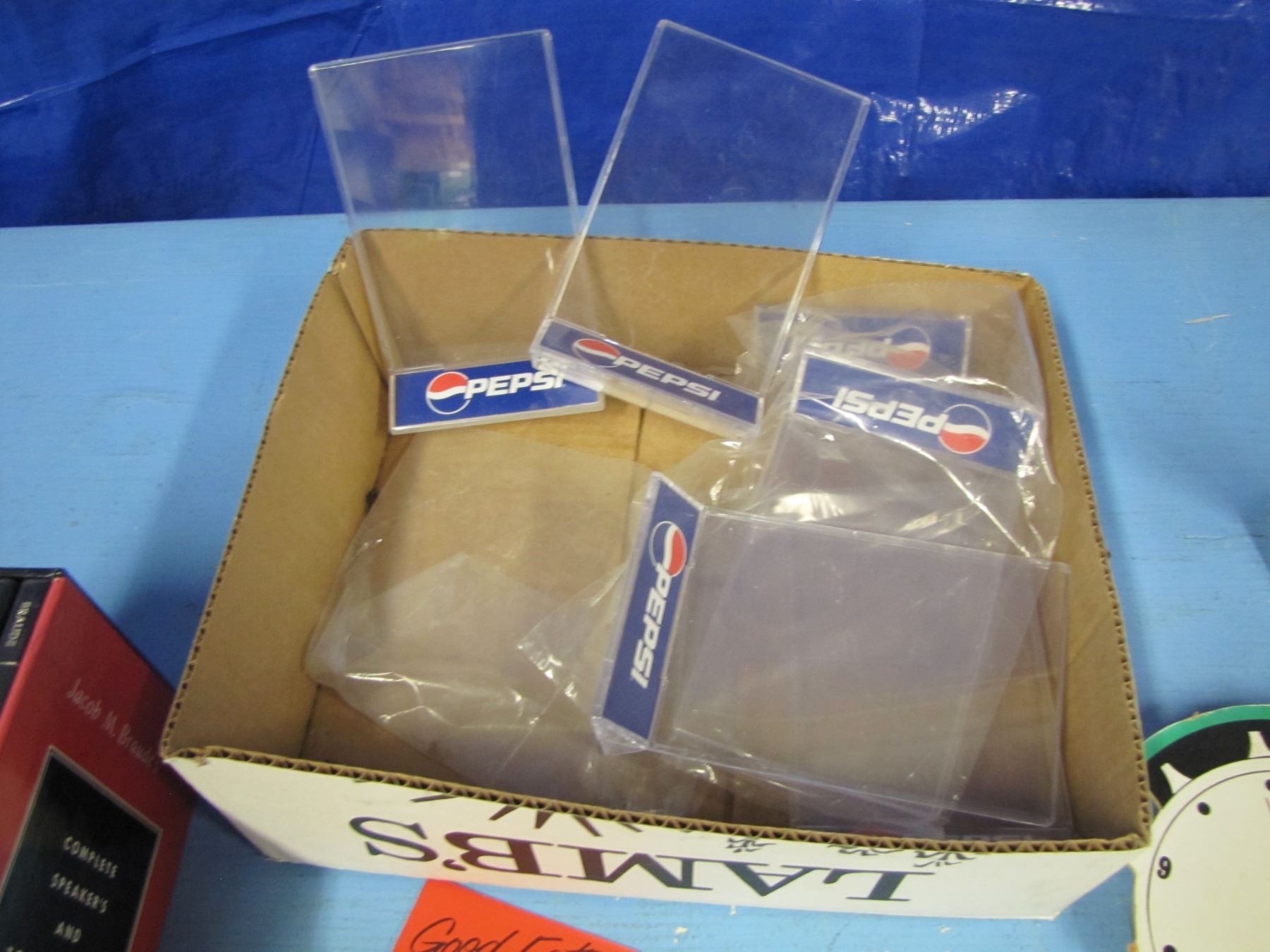 Pepsi menu holders, Toastmasters books etcetera