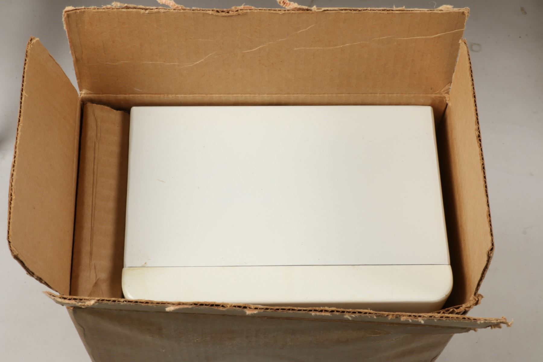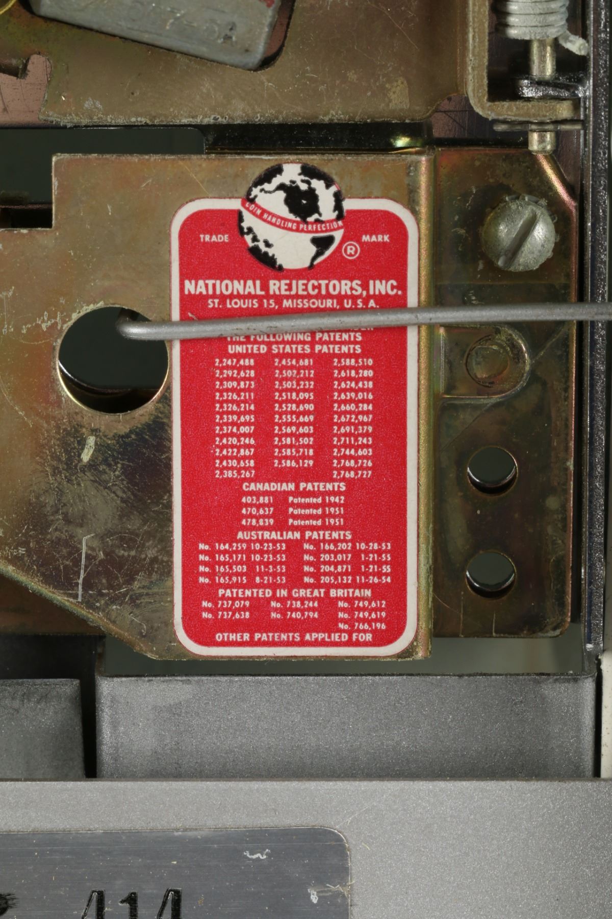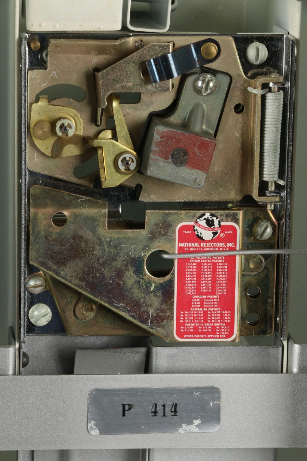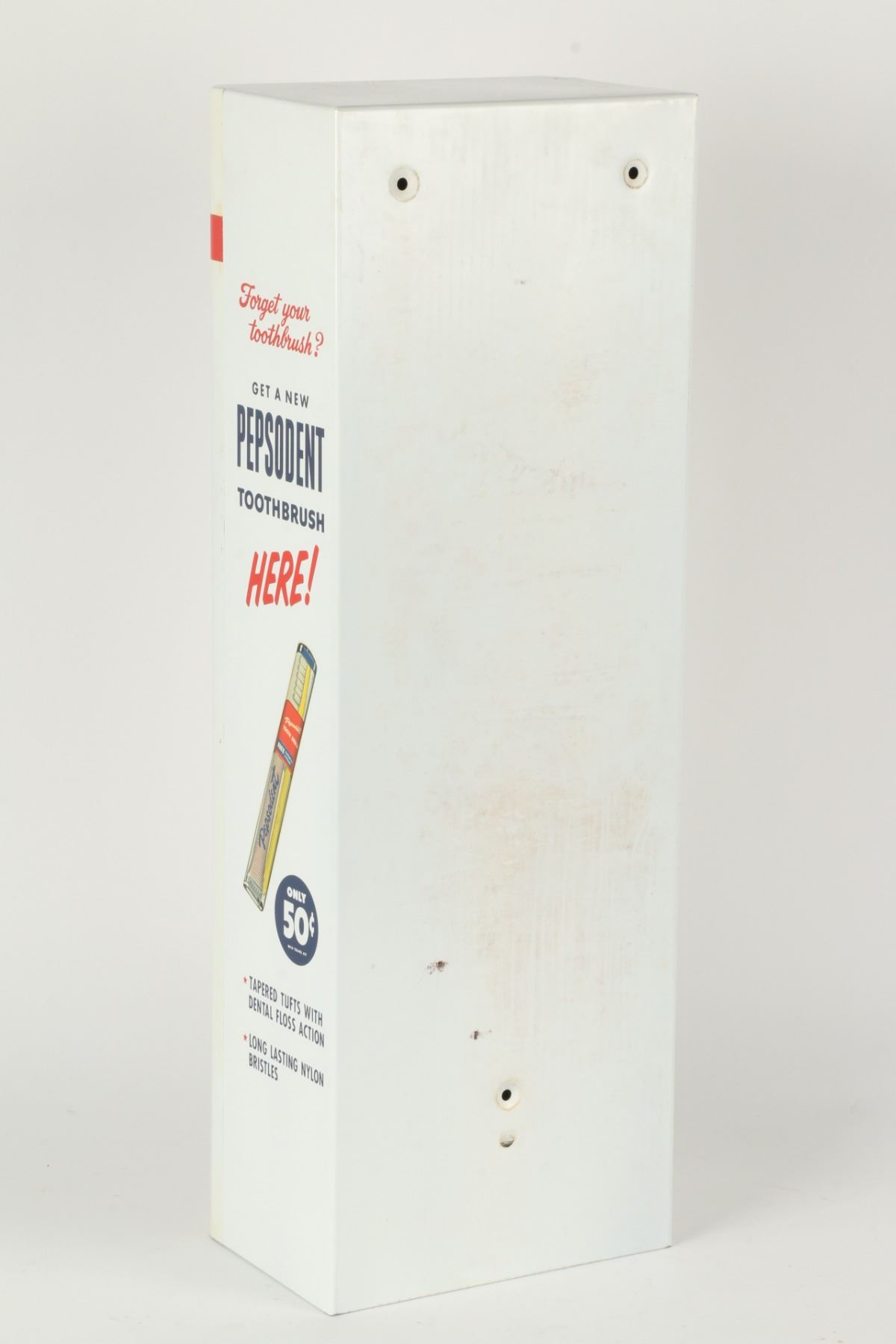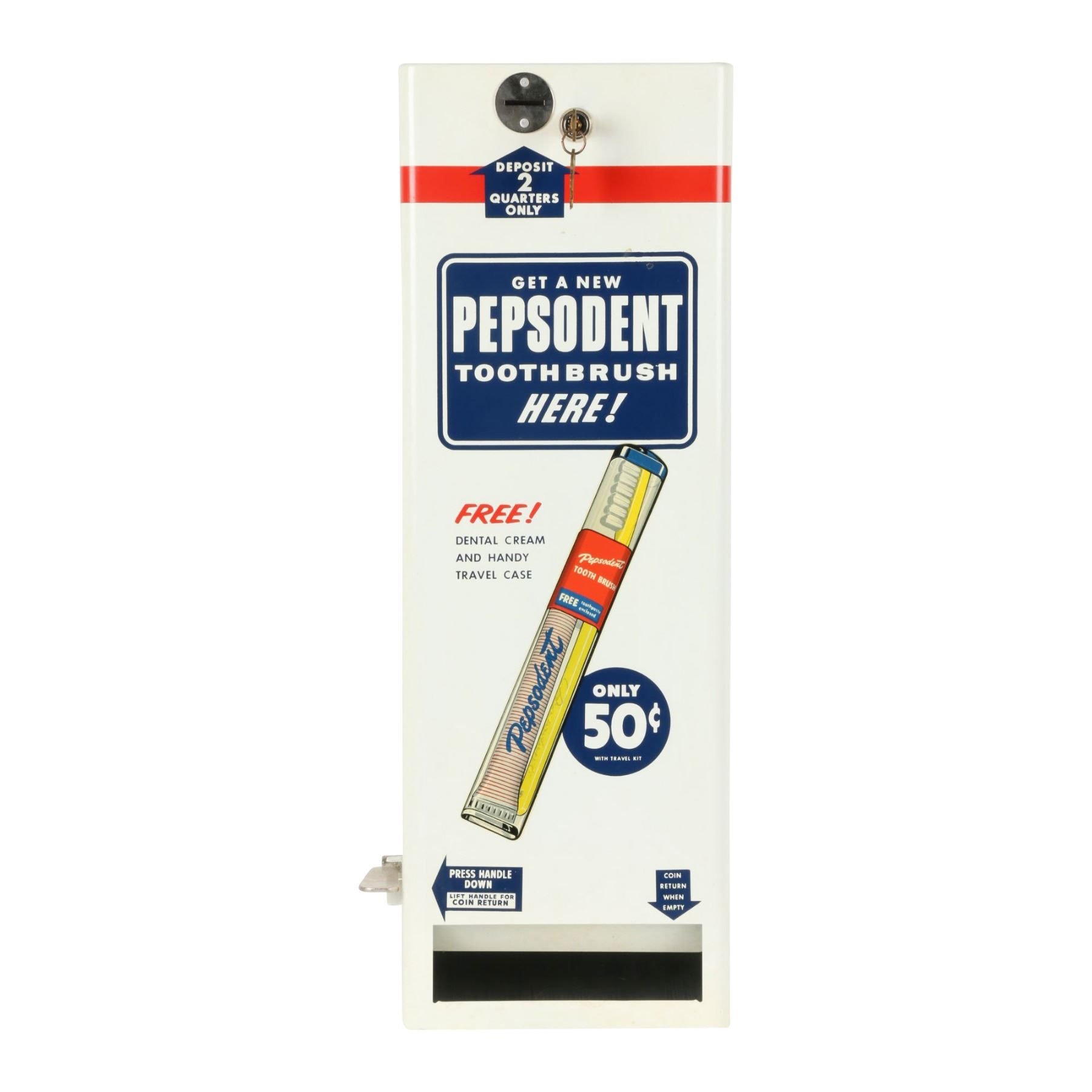 Circa 1950s. New old stock, unused in original packaging. Intended for wall-mounted display, but can also be used on countertop. Includes key. 25" x 8.5" x 6". $200-300.
