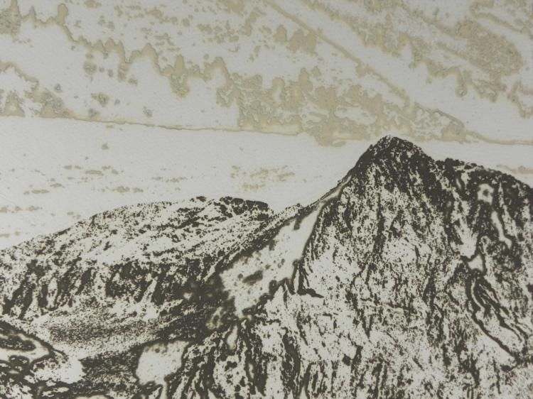 This abstract print portrays a mountain range and pines in vivid textures. Artist: PeraneSignature: In black pencil, lower rightTitle: Matchless Mts III Medium: Print on paperEdition: 148/300Sheet size: 22 x 30 inchesCondition: Excellent