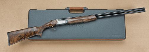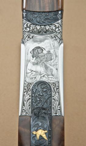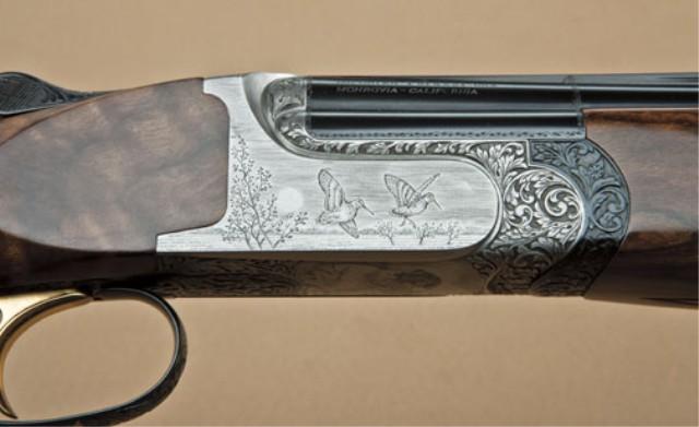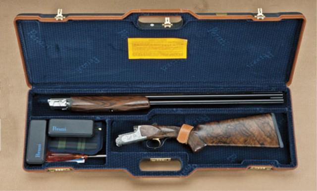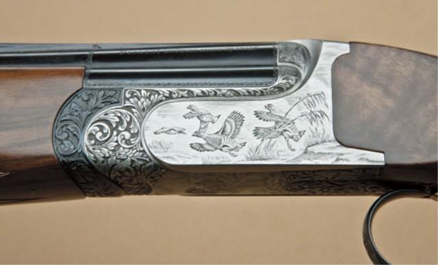 Perazzi MX28 SCO model 28ga over/under shotgun, factory flat ventilated rib, split barrels, factory screw-in chokes, 28-1/4”. Select burl wood pistol grip stock, fully engraved action in game scenes, serial #97193. The left side of the frame is engraved with game birds in flight. The right side shows hunting dog retrieving bird. The right side shows landing birds and high quality deep cut scroll accents. The stock is a beautiful burled walnut with satin type finish, nicely checkered with elongated pistol grip. Full choke set included in Perazzi case and tool. The stock measures 14-nearly ½” to the end of the wood, slightly over 15” to the end of the thin line Perazzi hard-rubber pad. Few high-grade 28’s are available on today’s market. From the Robert Petersen Estate. Est: $5,000 - $10,000