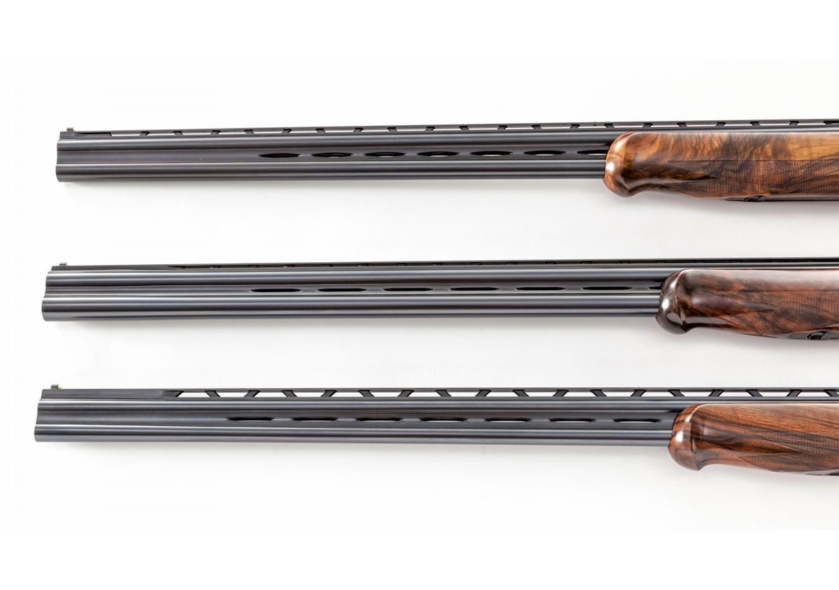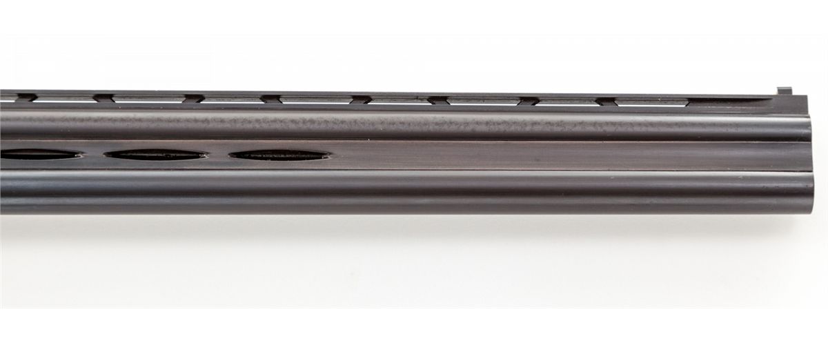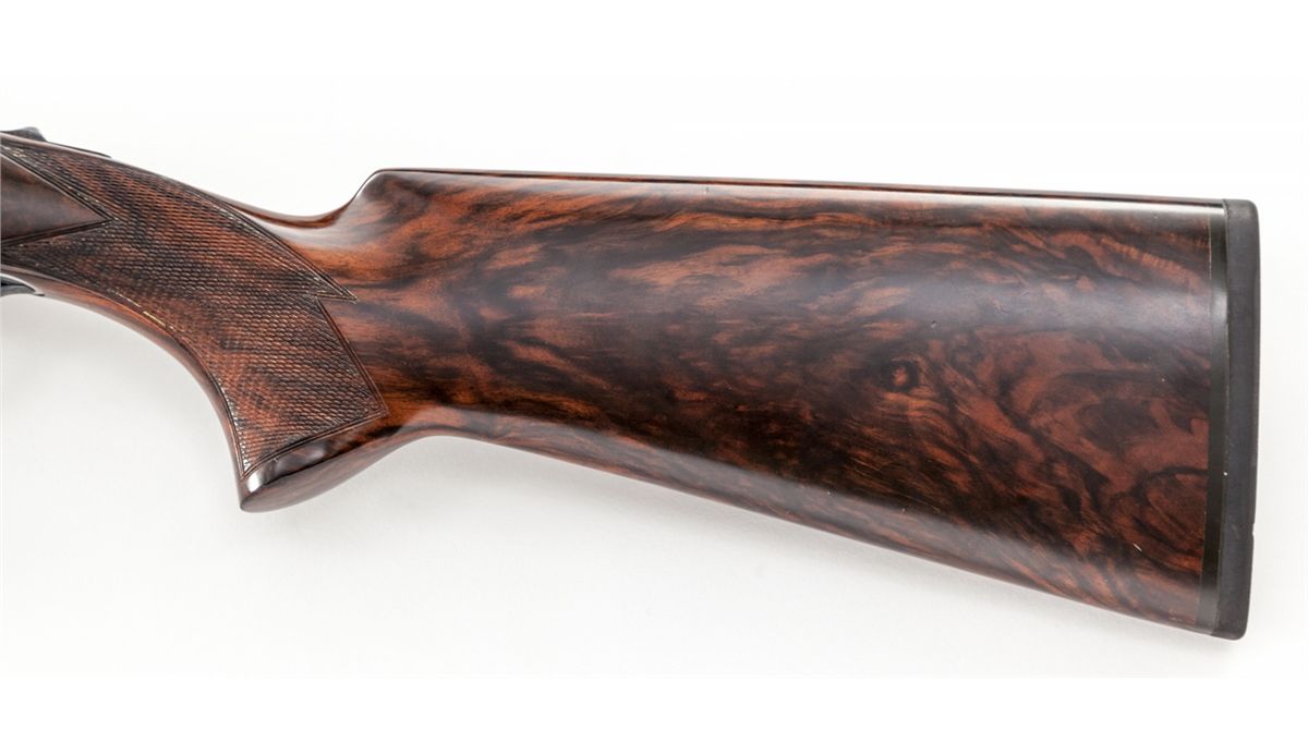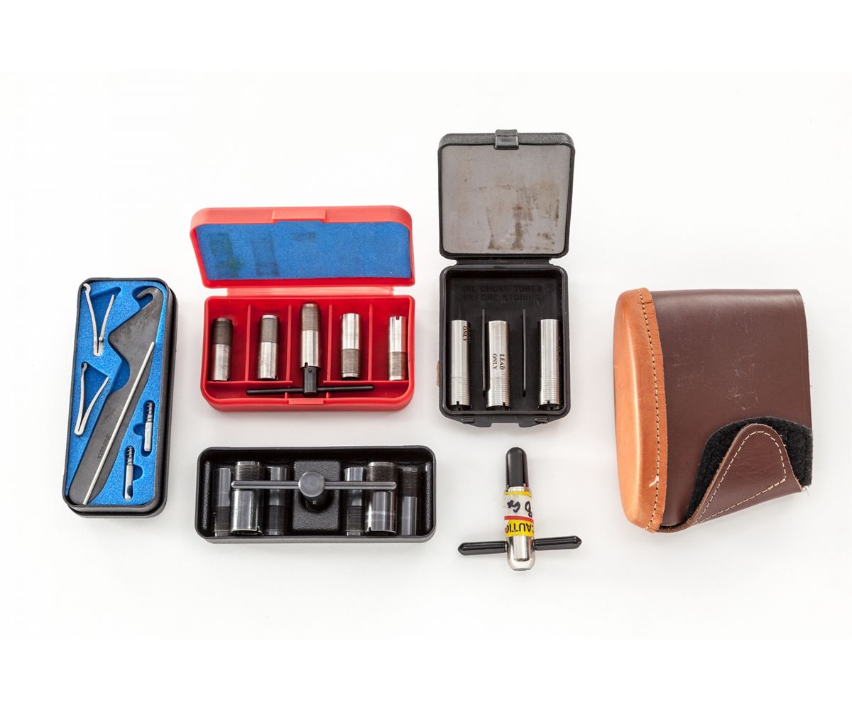 Perazzi SCO Model Two-Barrel Over/Under Shotgun Set, with later added .410 barrel, #90479, with 12 ga. 29-1/2'' barrels with Briley choke tubes, as well as 28 ga. 28'' barrels with Briley choke tubes, both numbered to the gun; later added .410 barrel has been fitted by Perazzi and numbered to match, 29-1/2'', and also utilizes Briley choke tubes. Standard SCO Model medium relief engraving additionally features gold inlay of Perazzi shield to bottom of frame, with work being executed by Badillini. Shotgun remains complete with choke tubes, tools, oiler, and instructions, in Perazzi case. Condition is excellent showing only minor pressure marks to stock from handling. Triggerguard retains 99% of original blue with wear at high edges. Gold-plated trigger shows some thinning. Length of pull to end of pad: 14-5/8''. Est.: $18,000-$24,000. (Modern)